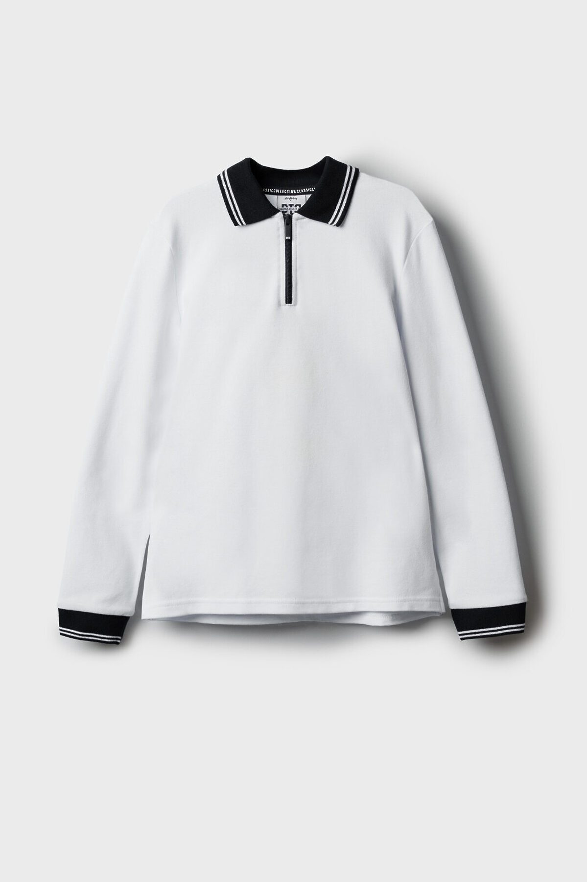 Классическое белое поло с длинным рукавом для мальчика Идеальный вариант для школы – стильное и практичное белое поло с длинным рукавом станет универсальной основой школьного гардероба. Модель выполнена из качественного хлопкового пике, что обеспечивает комфорт в течение всего учебного дня. Ключевые особенности: + Застежка по полочке на молнию – удобно надевать и регулировать воротник + Классический крой regular – комфортная посадка без стеснения движений + Дышащая ткань пике – приятная к телу и износостойкая + Универсальный белый цвет – легко комбинируется со школьной формой Почему стоит выбрать: Строгий и опрятный вид – подходит для мальчика-школьника и подростка Удобная застежка и качественные материалы Подходит как в школу, так и для повседневной носки Дополните школьный образ этим стильным поло – ваш ребенок будет выглядеть аккуратно и чувствовать себя комфортно!