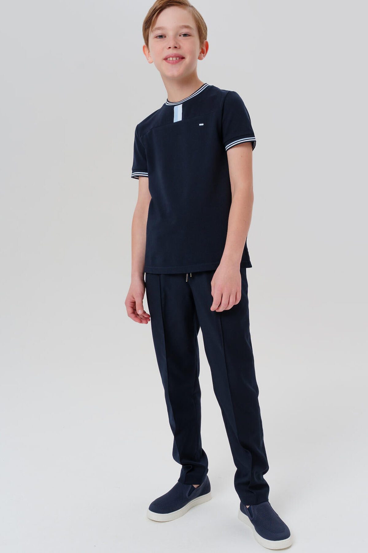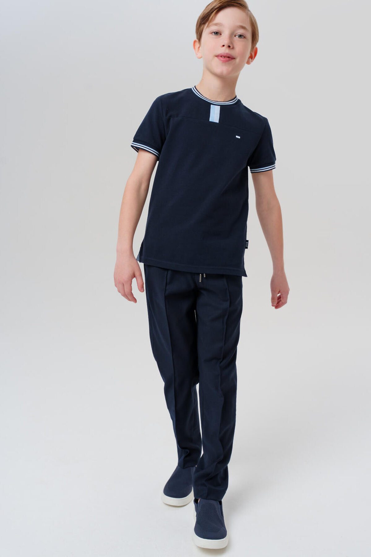 Футболка для мальчика подростка Идеальный вариант для школы – стильная и практичная футболка станет универсальной основой школьного гардероба. Модель выполнена из качественного хлопкового пике, что обеспечивает комфорт в течение всего учебного дня. Ключевые особенности: + Классический крой regular – комфортная посадка без стеснения движений + Дышащая ткань пике – приятная к телу и износостойкая + Разрезы в боковых швах Почему стоит выбрать: Строгий и опрятный вид – подходит для мальчика-школьника и подростка Удобная застежка и качественные материалы Подходит как в школу, так и для повседневной носки Дополните школьный образ этим стильным поло – ваш ребенок будет выглядеть аккуратно и чувствовать себя комфортно!