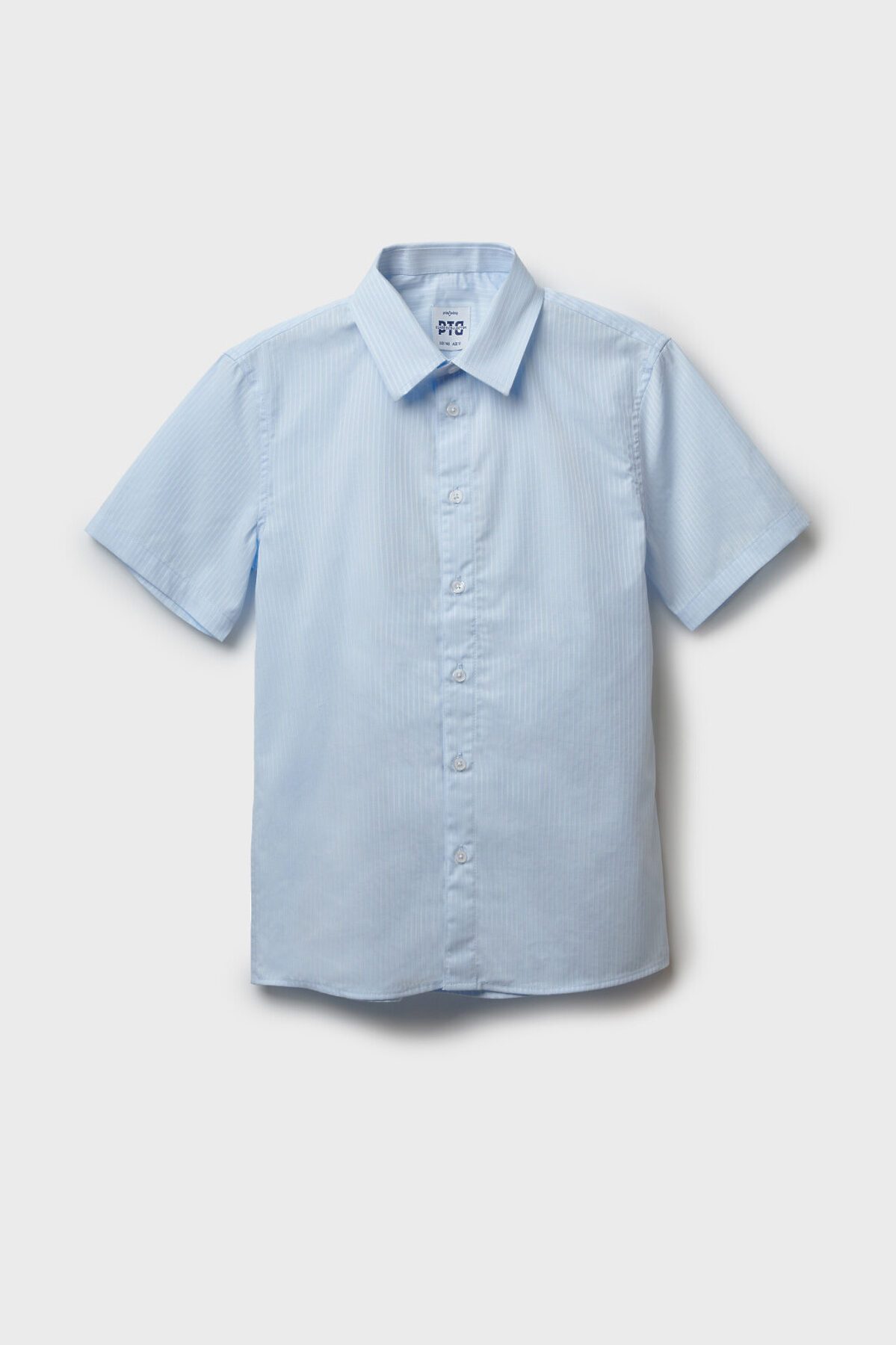 Классическая голубая рубашка с коротким рукавом для мальчика подростка на 1 сентября