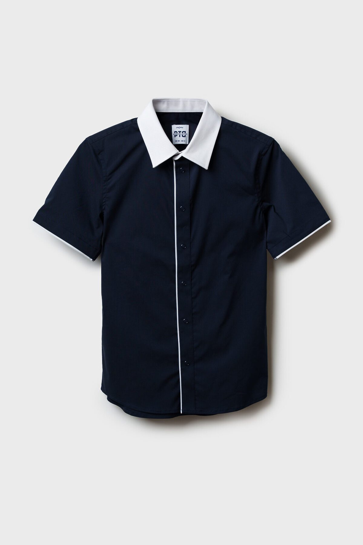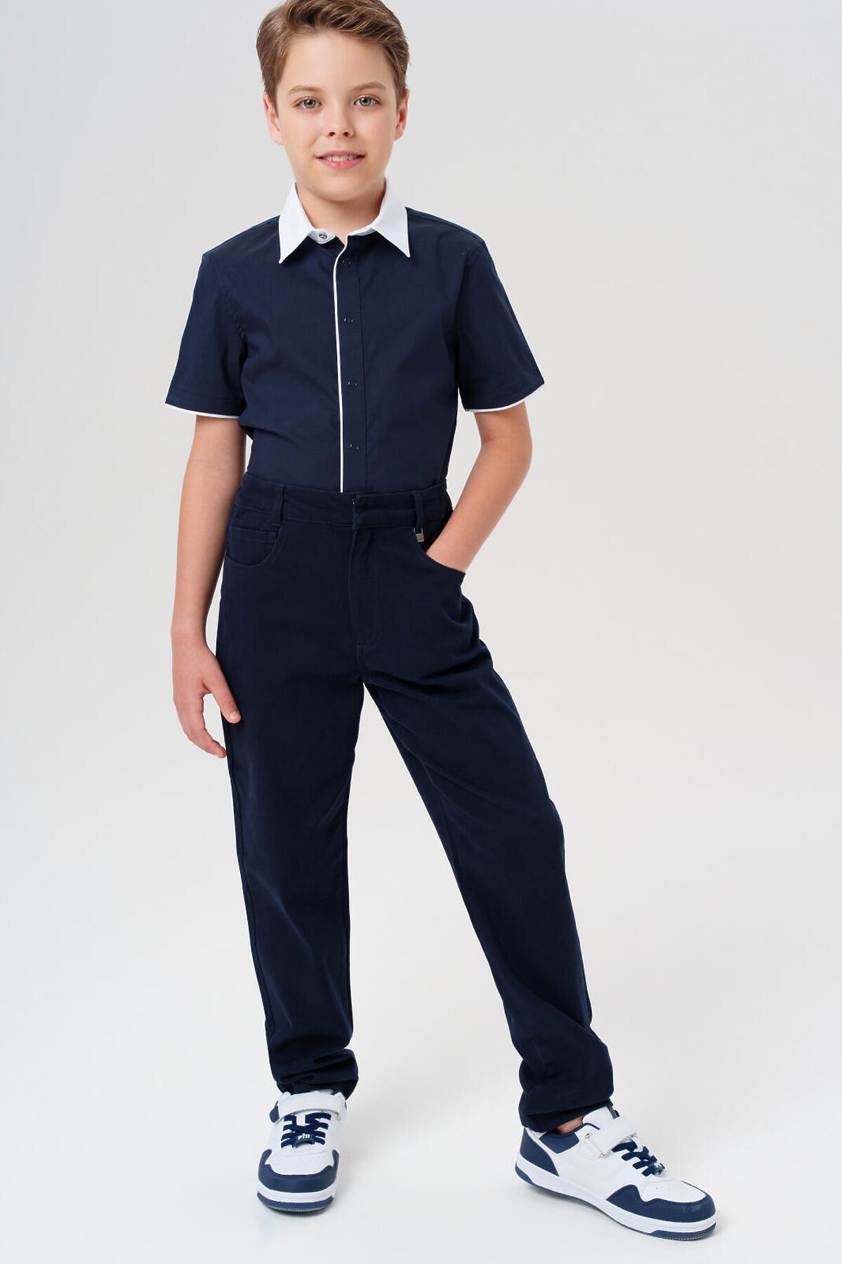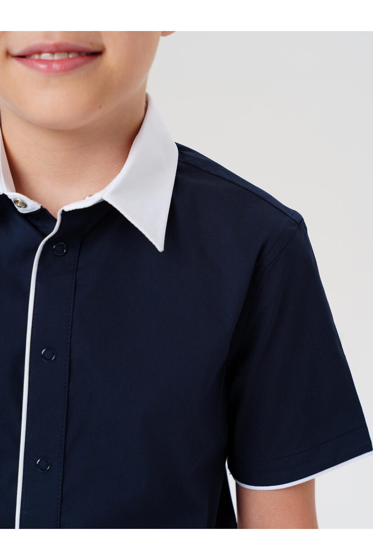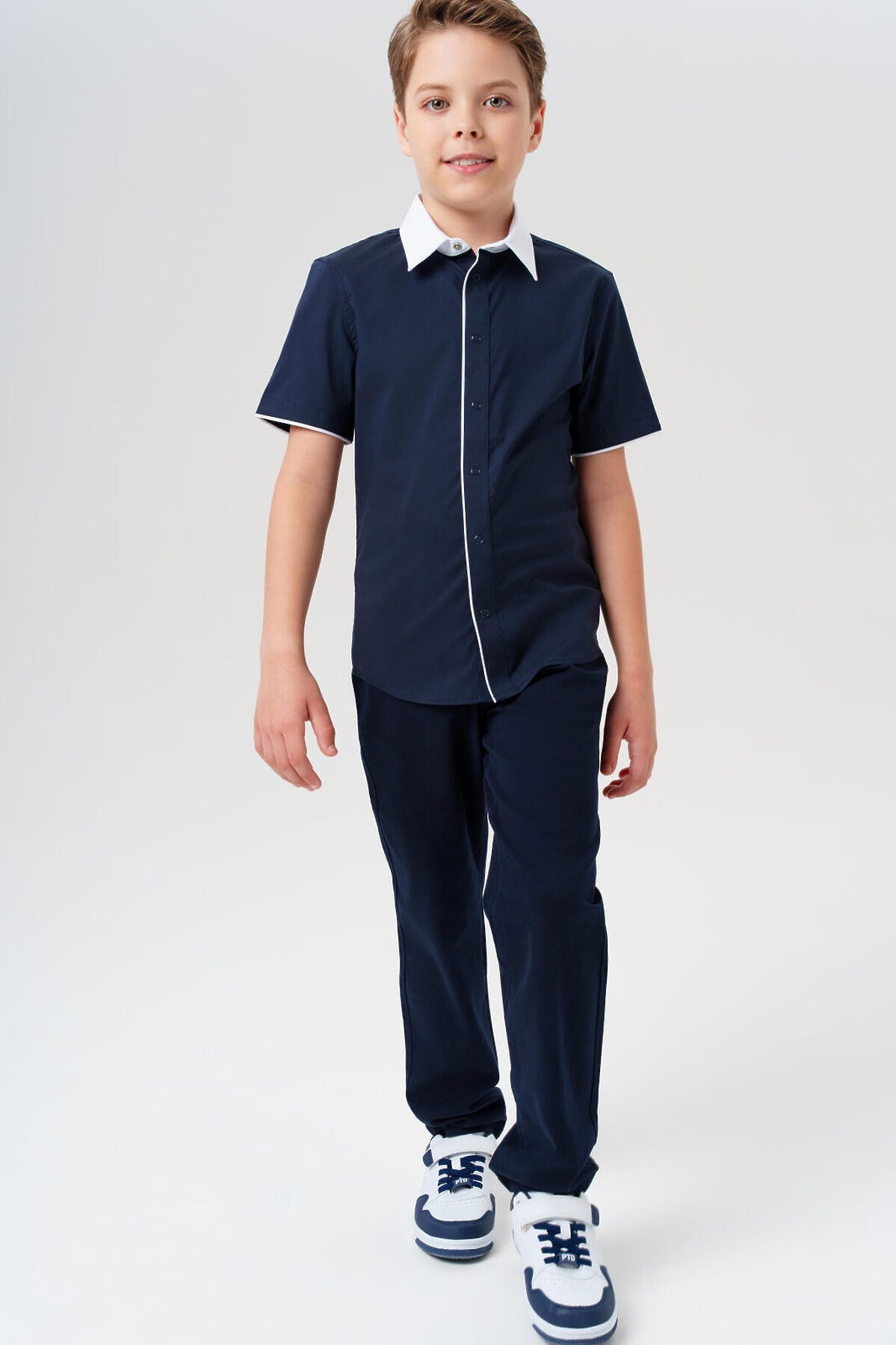Классическая синяя рубашка с коротким рукавом для мальчика подростка на 1 сентября