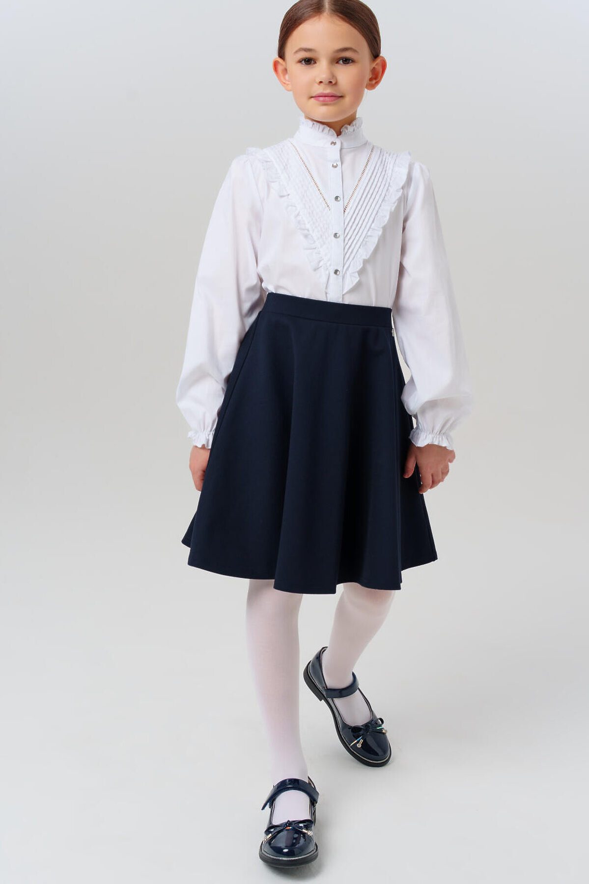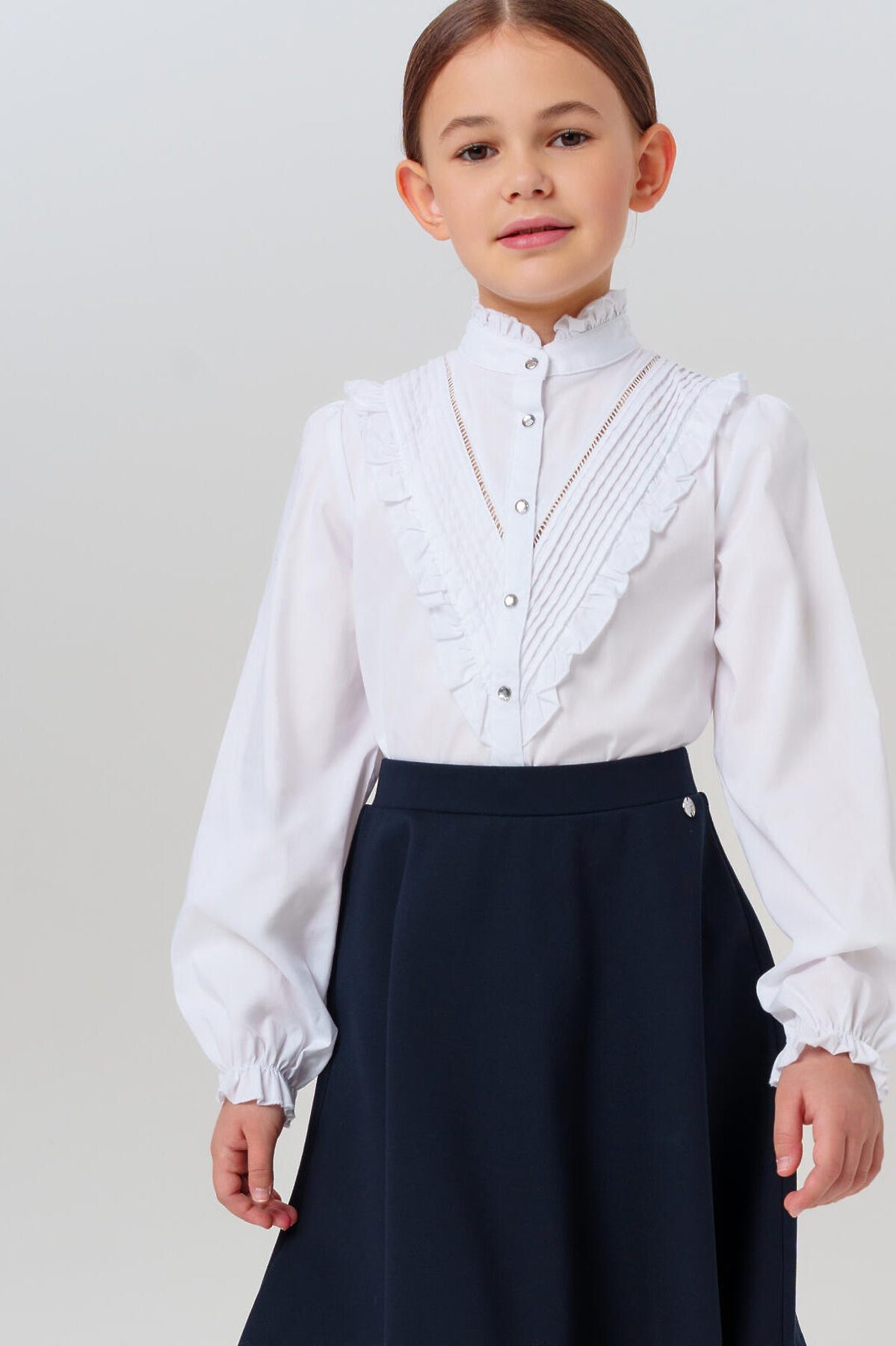 Идеальный вариант на 1 сентября и для повседневной носки! Эта текстильная блузка сочетает нарядный дизайн и комфорт для учебы.