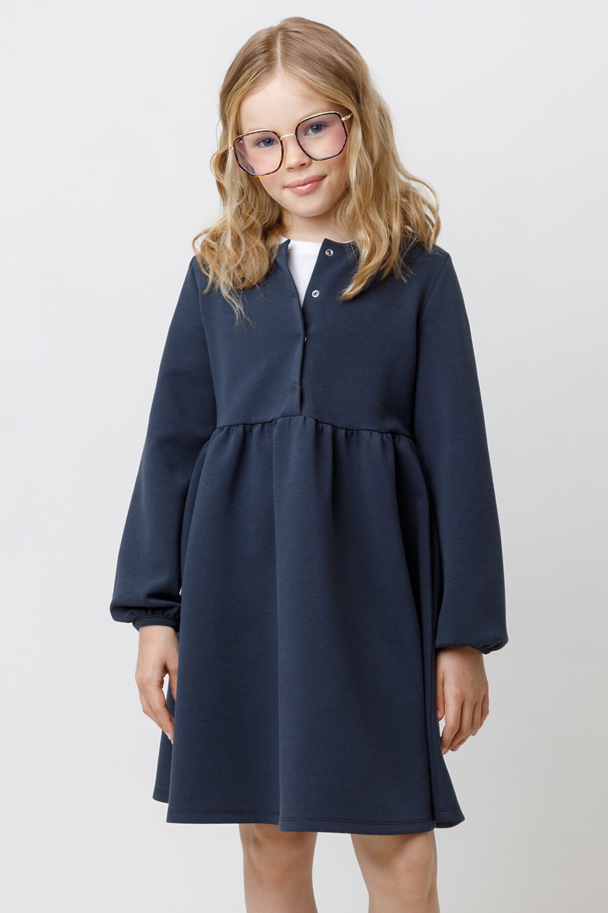 Платье школьное с длинными рукавами для девочки. Изготовлено из высококачественного трикотажа интерлок DOUBLE FACE. Застёгивается спереди на кнопки. Идеальный и комфортный вариант на каждый день. Все трикотажные изделия производятся в соответствии с нормами швейцарского сертификата ЭкоТекс. Сделано в России. - интерлок DOUBLE FACE (62% хлопок, 30% п/э, 8% спандекс) - застёжка спереди на кнопки