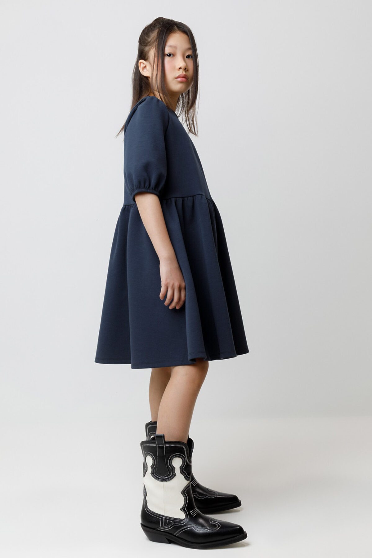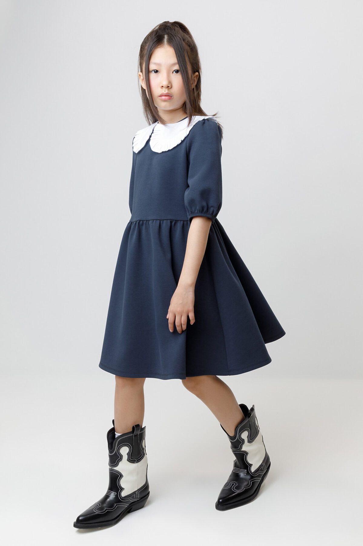 Платье школьное с короткими рукавами для девочки. Изготовлено из высококачественного трикотажа интерлок DOUBLE FACE. Застёгивается на пуговицу на спинке. Низ рукавов собран на резинку. Идеальный и комфортный вариант на каждый день. Все трикотажные изделия производятся в соответствии с нормами швейцарского сертификата ЭкоТекс. Сделано в России. - интерлок DOUBLE FACE (62% хлопок, 30% п/э, 8% спандекс) - застёжка на пуговицу сзади