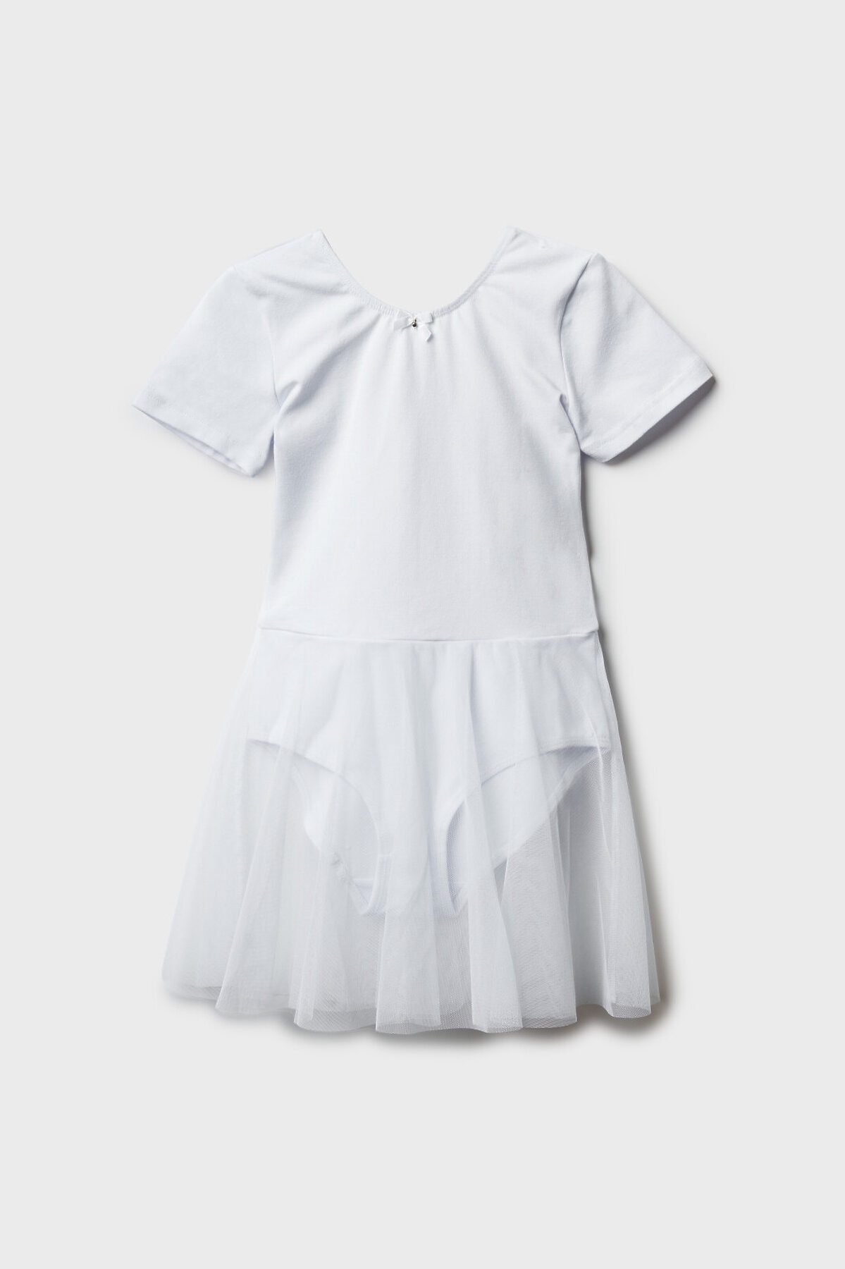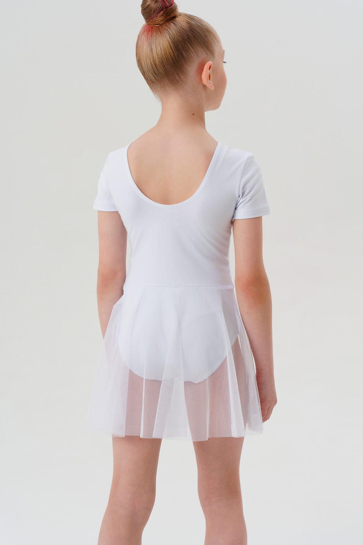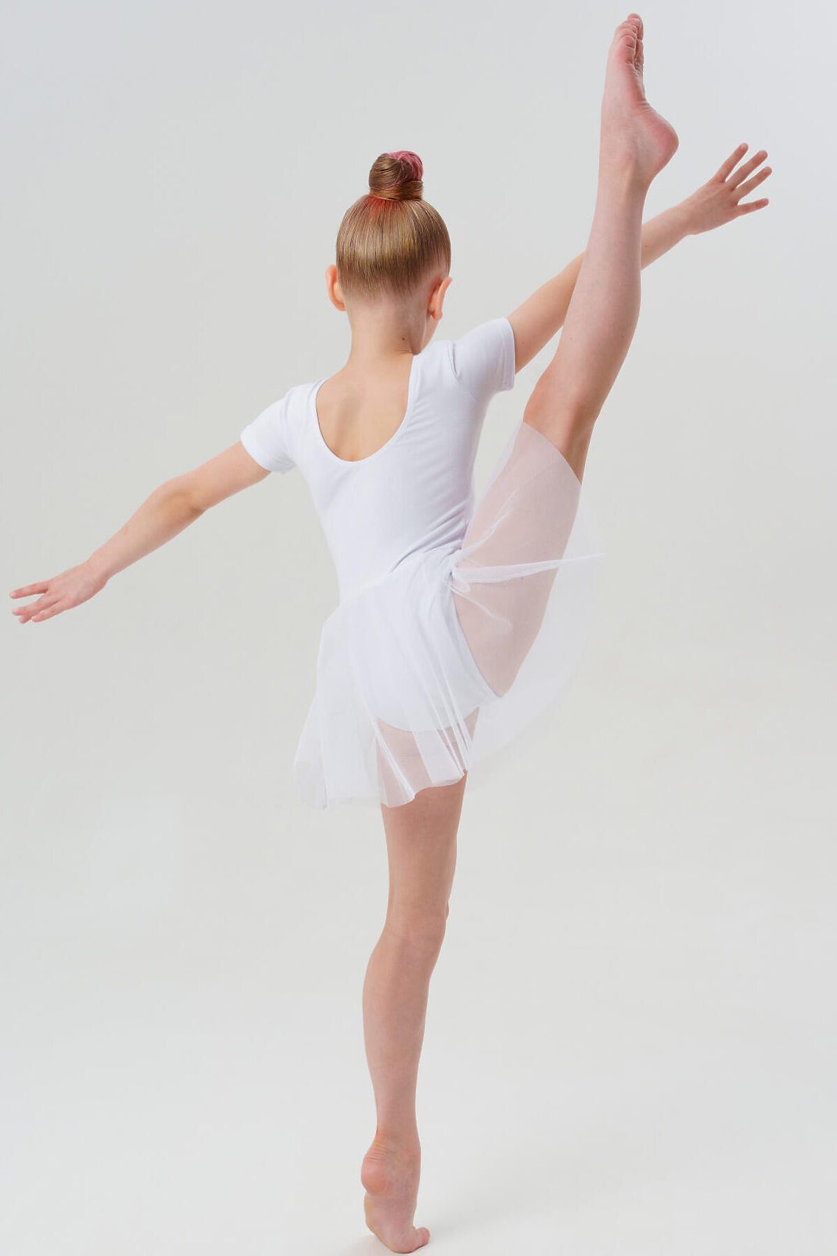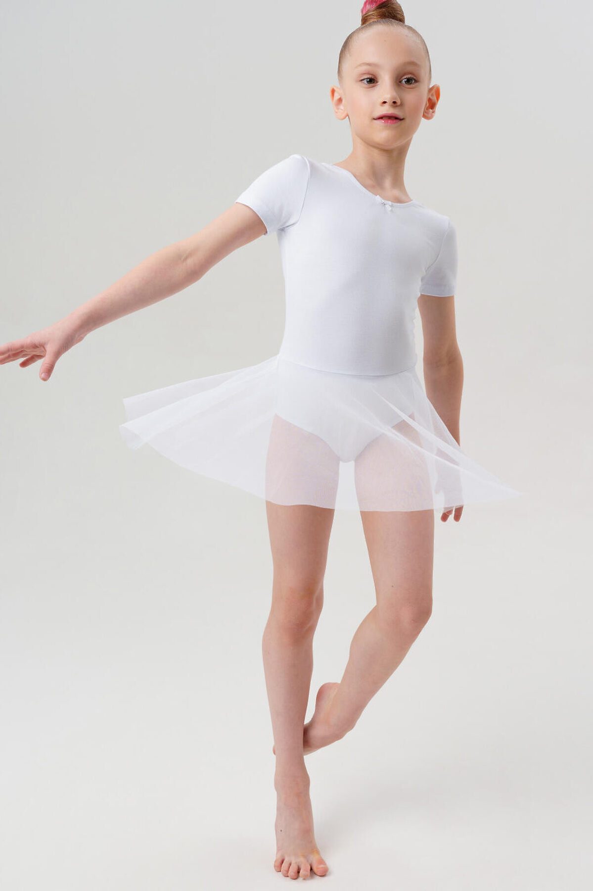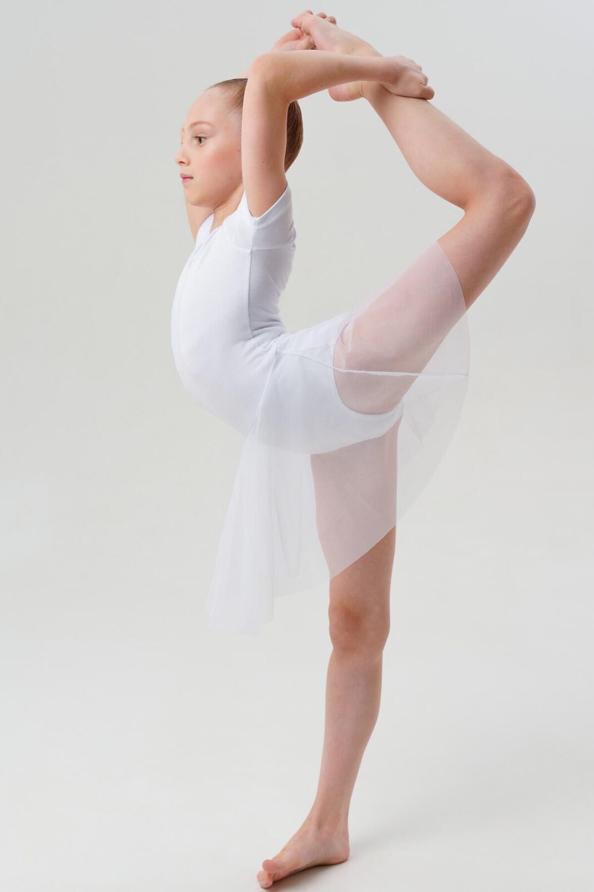 Спортивный белый купальник с коротким рукавом и юбкой из сетки для девочки – комфорт и свобода движений
