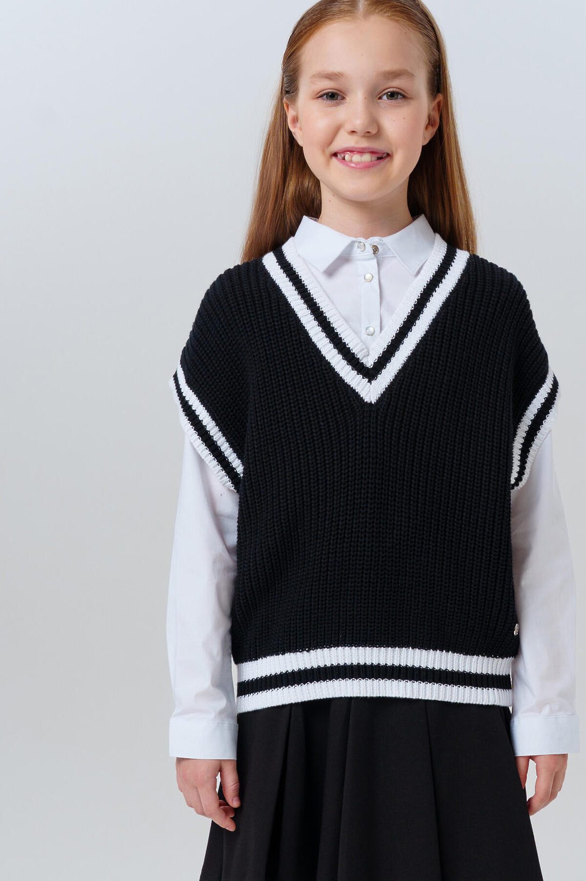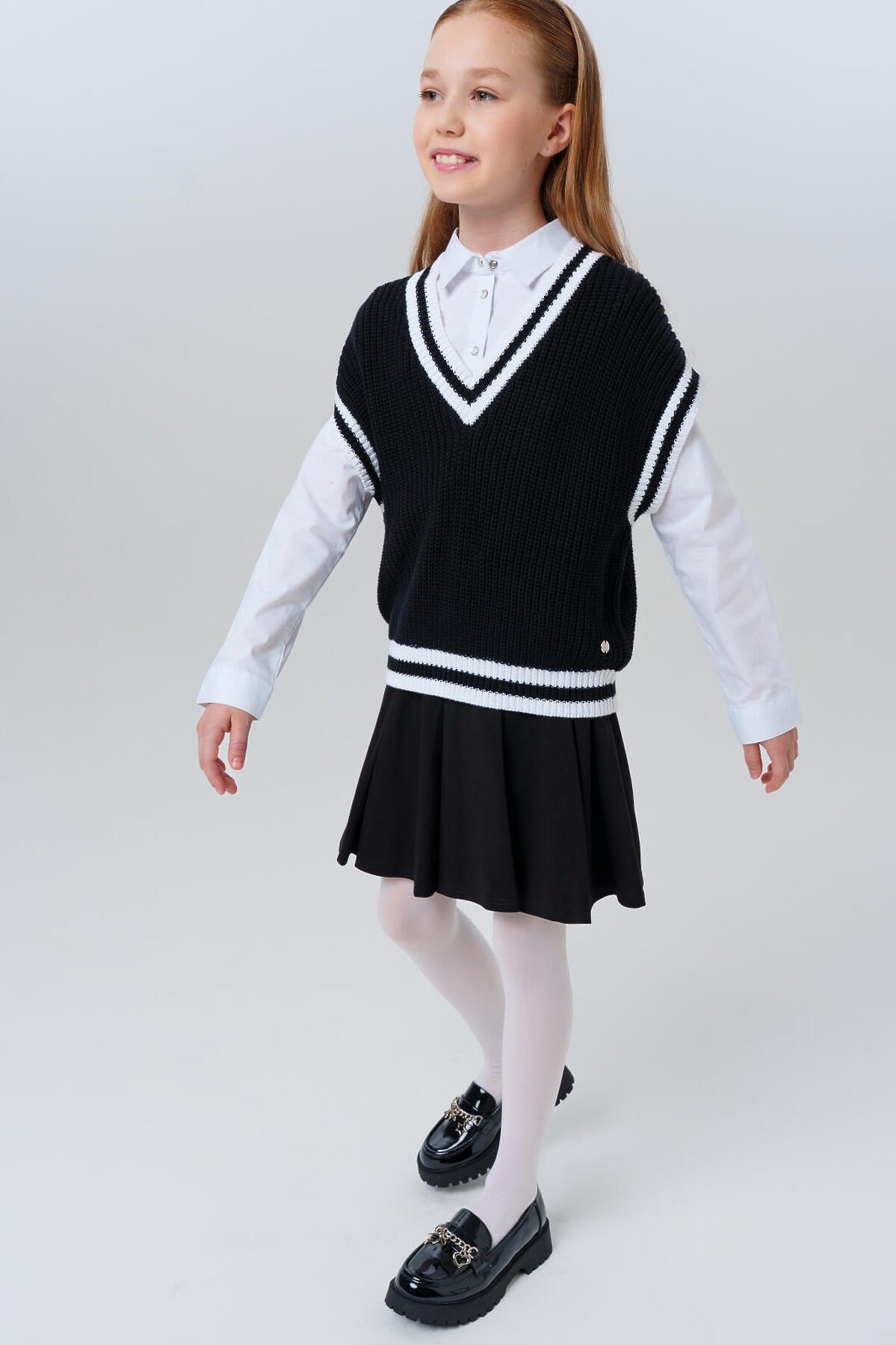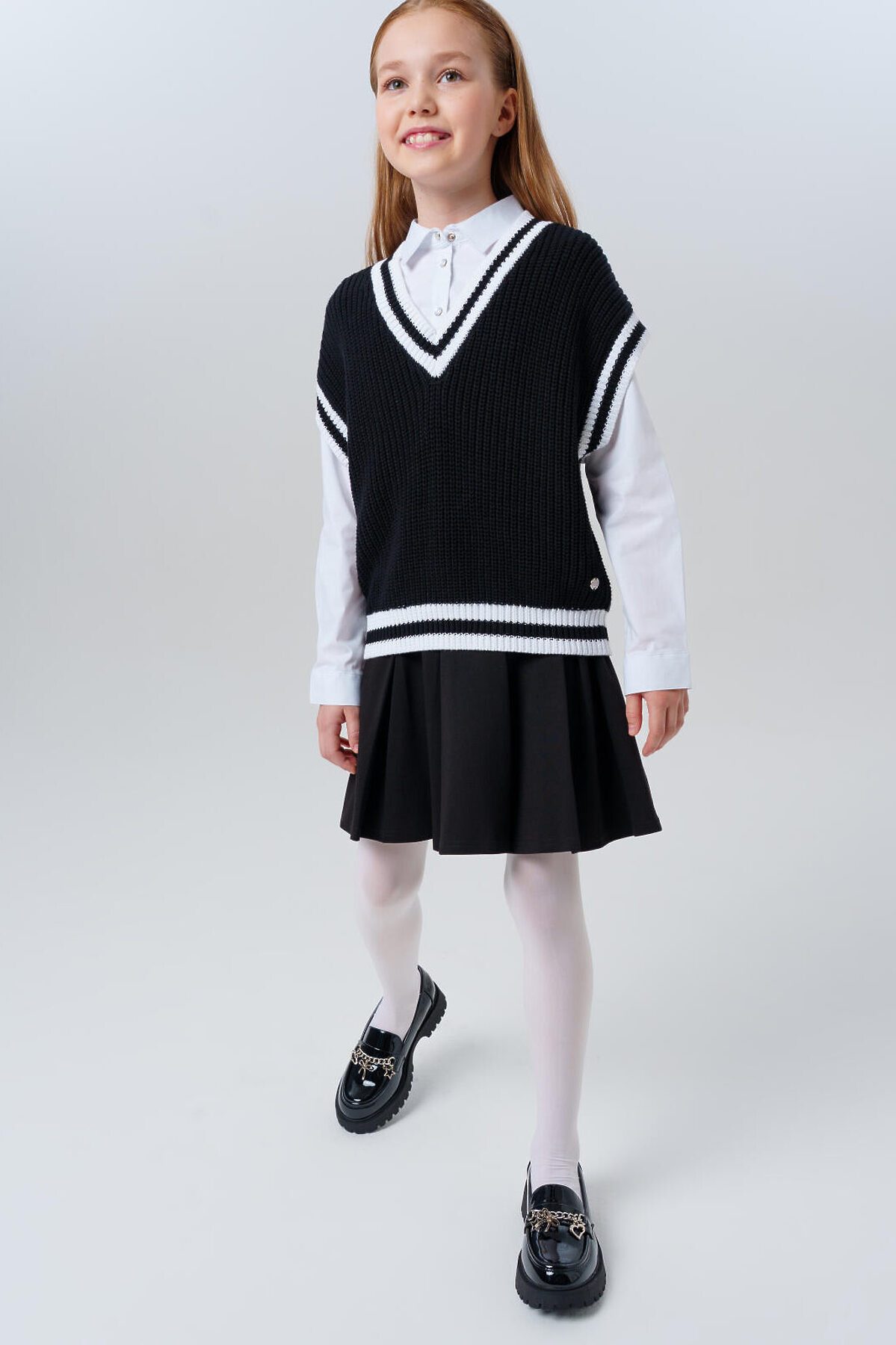 Этот модный жилет для школы станет универсальным элементом гардероба юной модницы. Модель выполнена в comfort силуэте – свободный крой обеспечивает комфорт в движении и современный внешний вид.