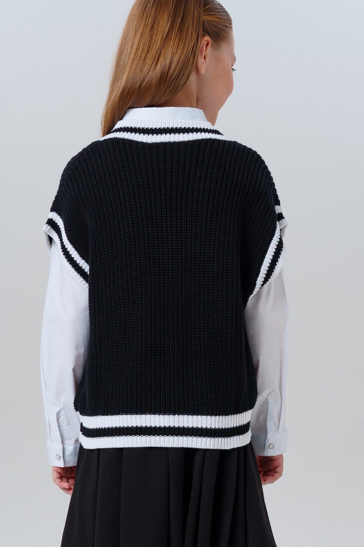 Отличный вариант для повседневной носки и школьных будней. Качественные материалы и продуманный крой делают этот жилет практичным выбором для девочки школьницы.