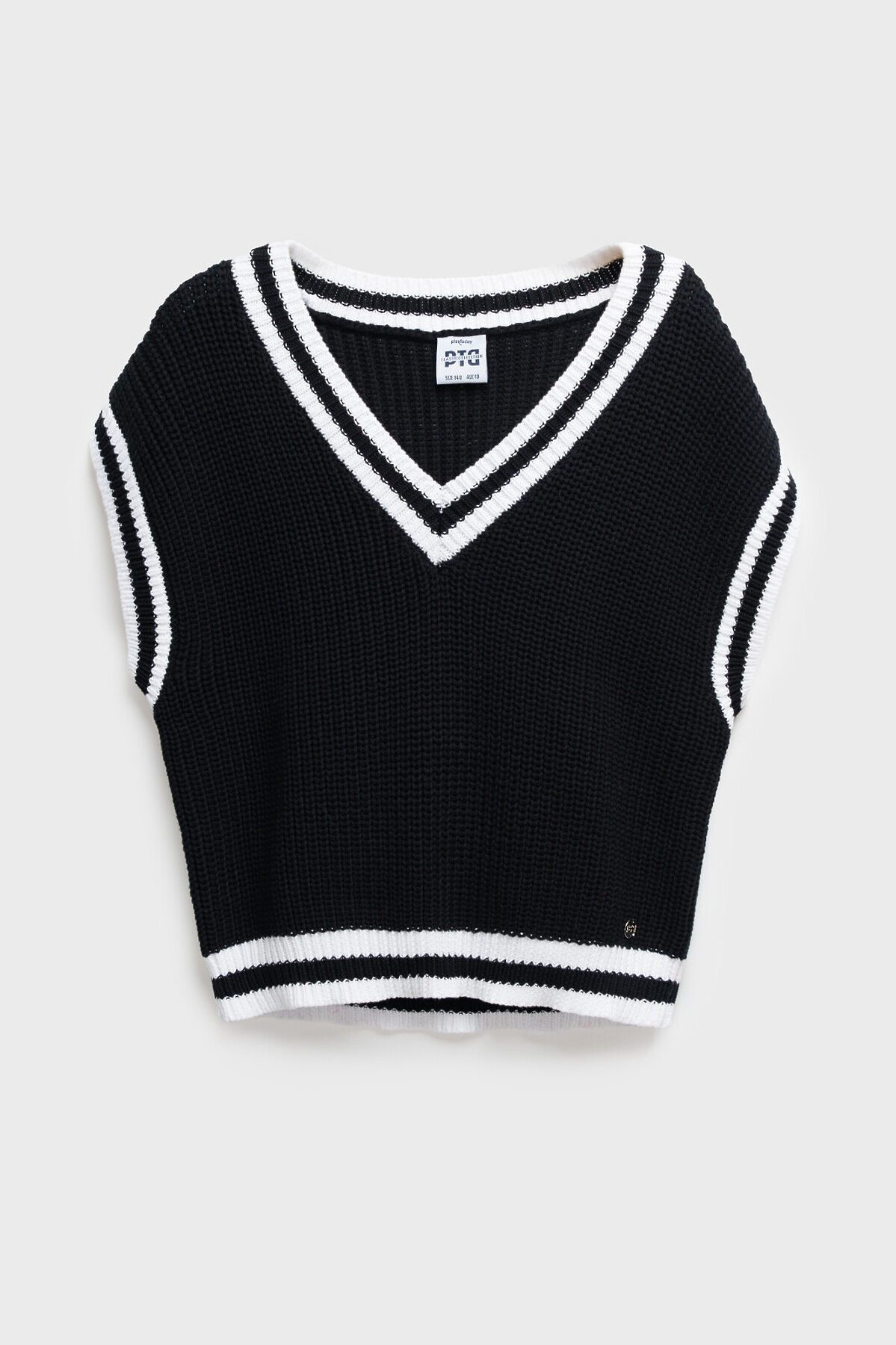 Стильный школьный укороченный черный жилет для девочки подростка.