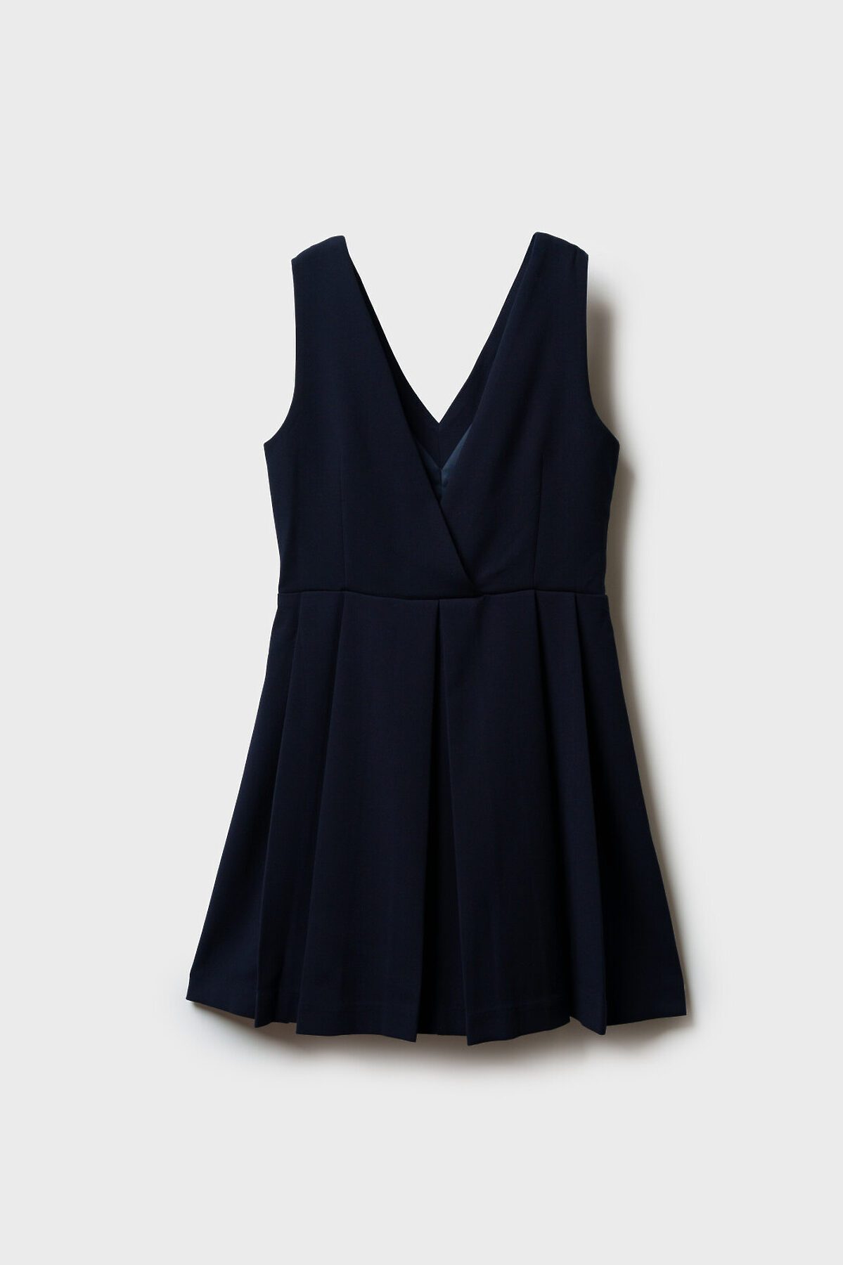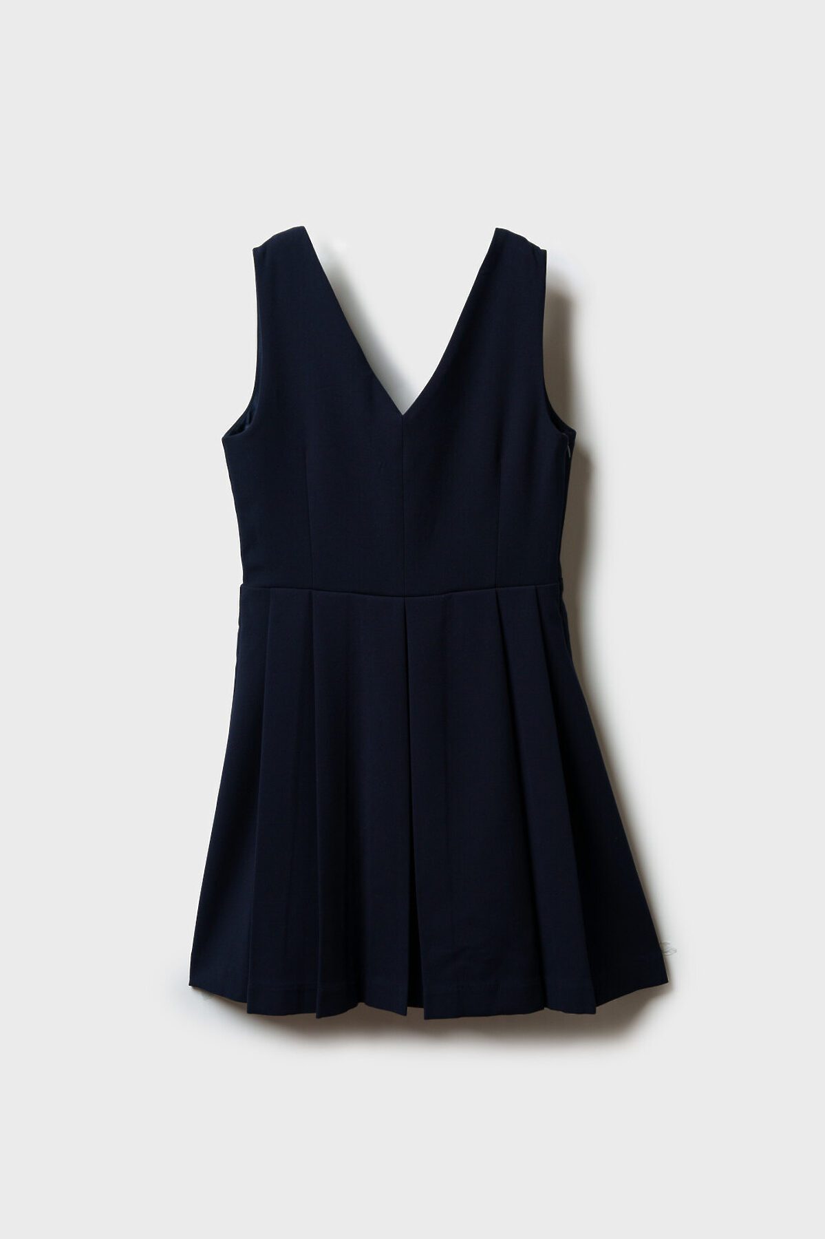 Темно-синее школьное текстильное платье сарафан для девочки-подростка