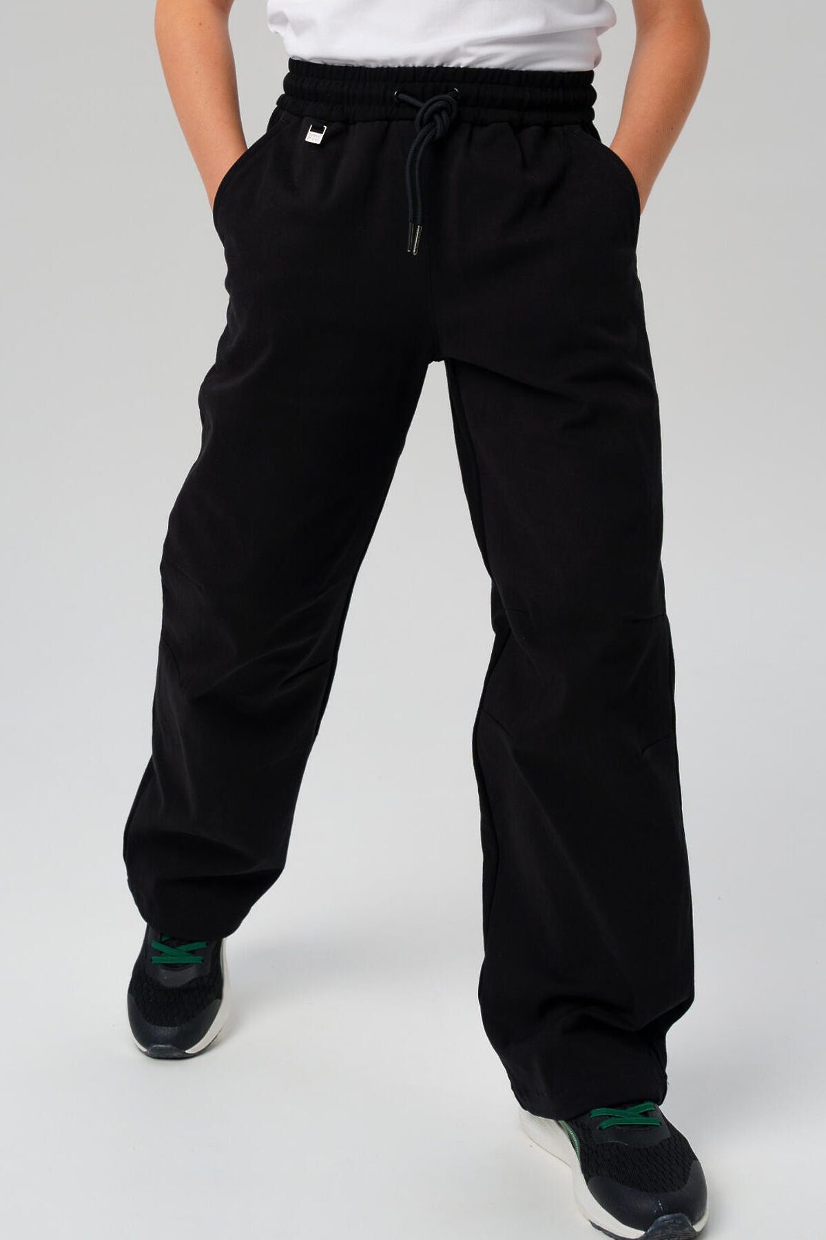 Идеальные брюки для школы, сочетающие комфорт и аккуратный внешний вид. Модель с посадкой оверсайз обеспечивает удобную свободу движений, а резинка со шнурком позволяет легко регулировать посадку по фигуре.