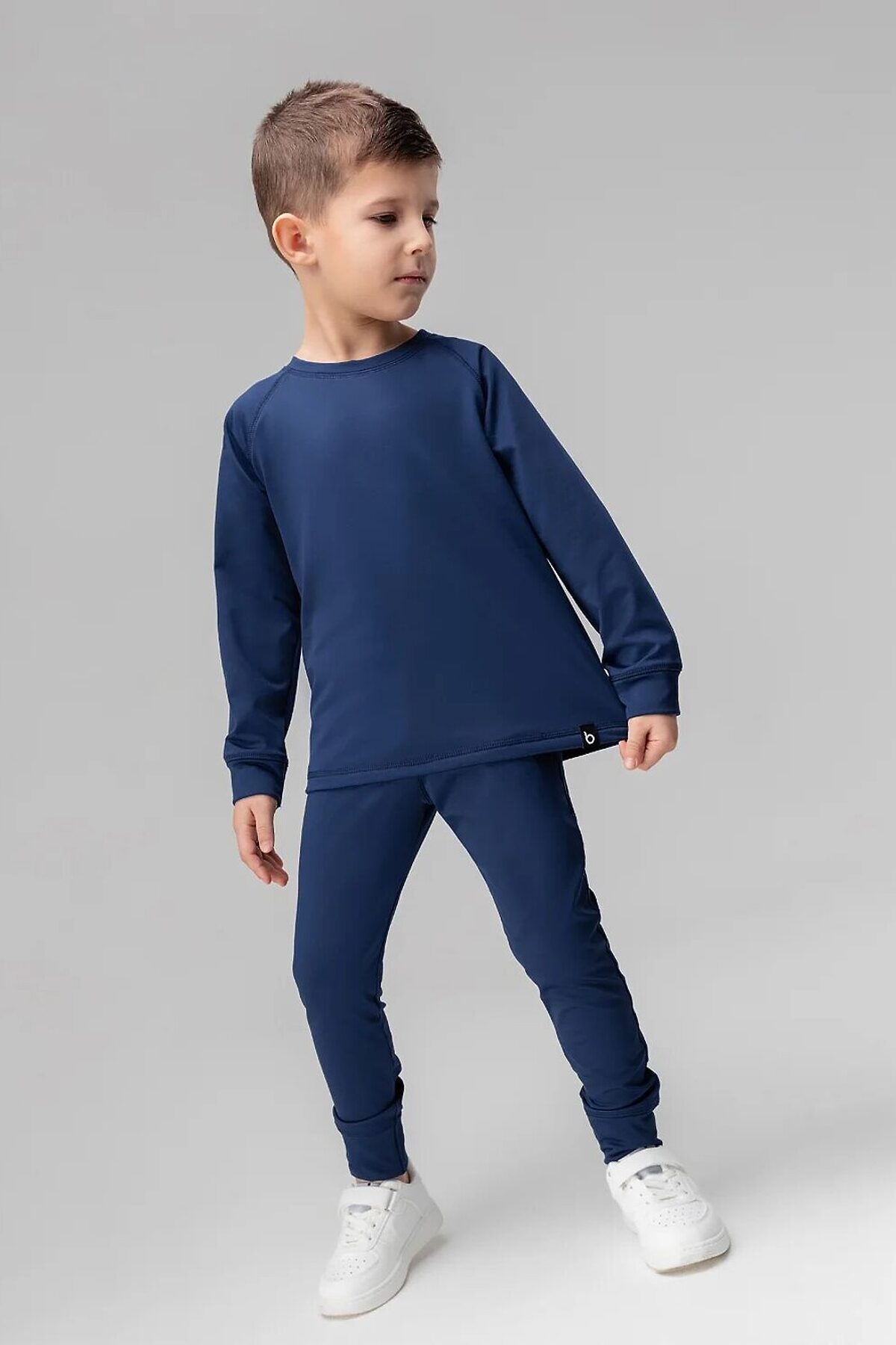 Термокостюм детский. Свитшот: рукава на манжетах, полуприлегающий покрой. Брюки, детали: прилегающий покрой, пояс - эластичная резинка, зауженный низ, без застежек, без карманов. Состав: термобифлекс 100% полиэстер