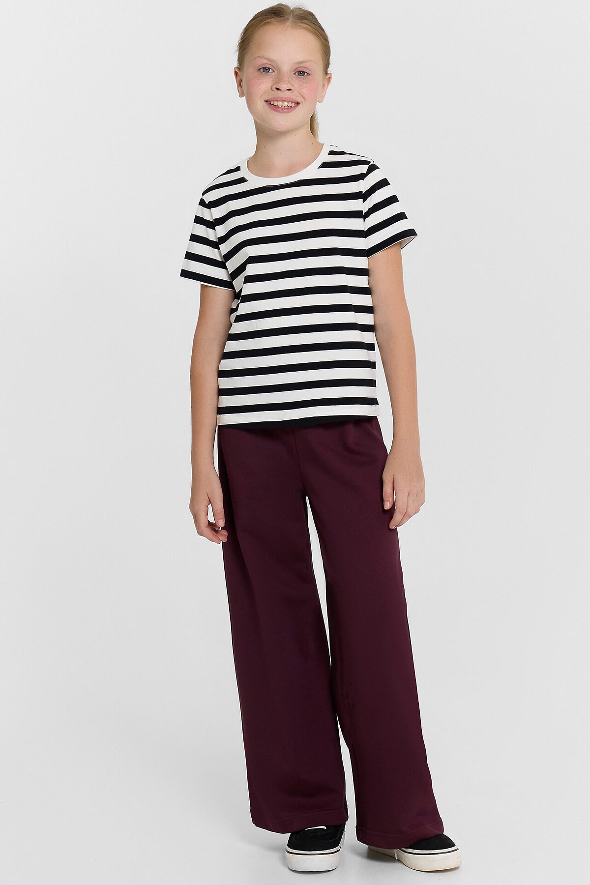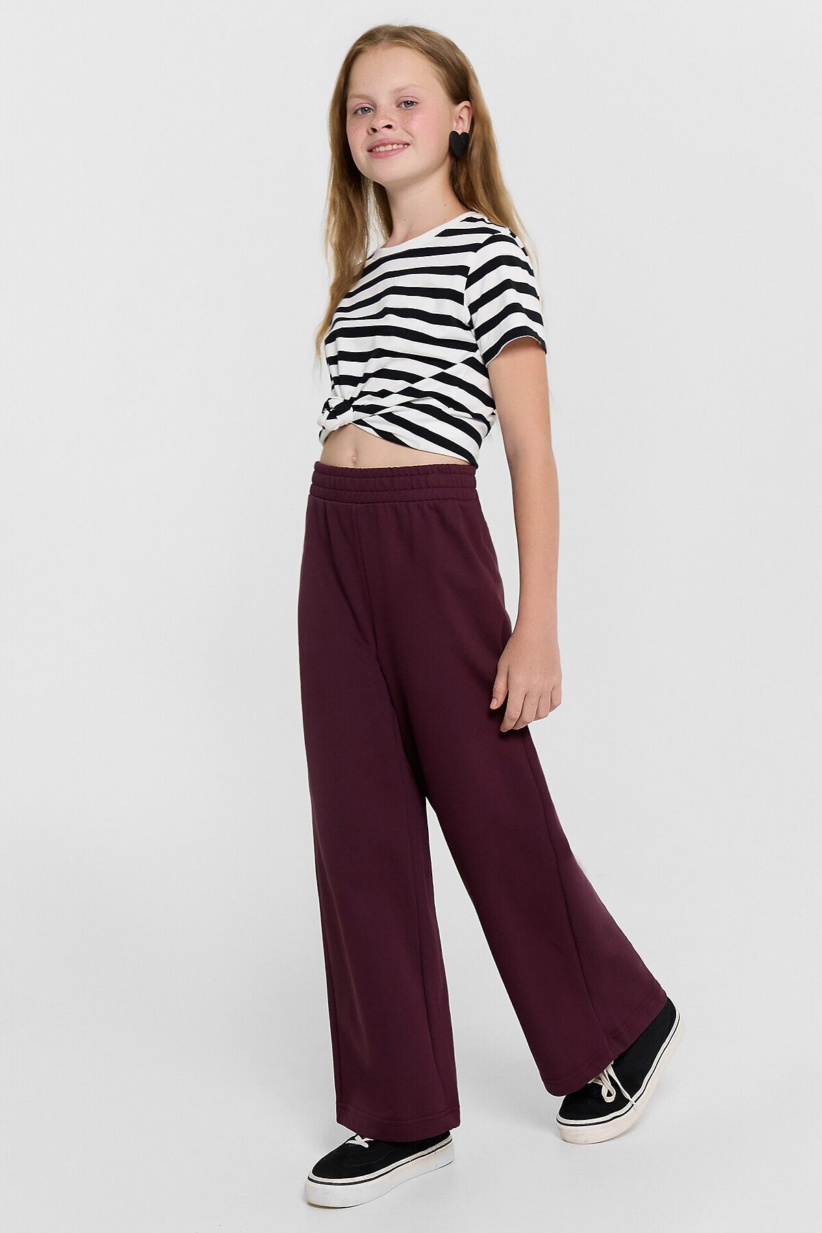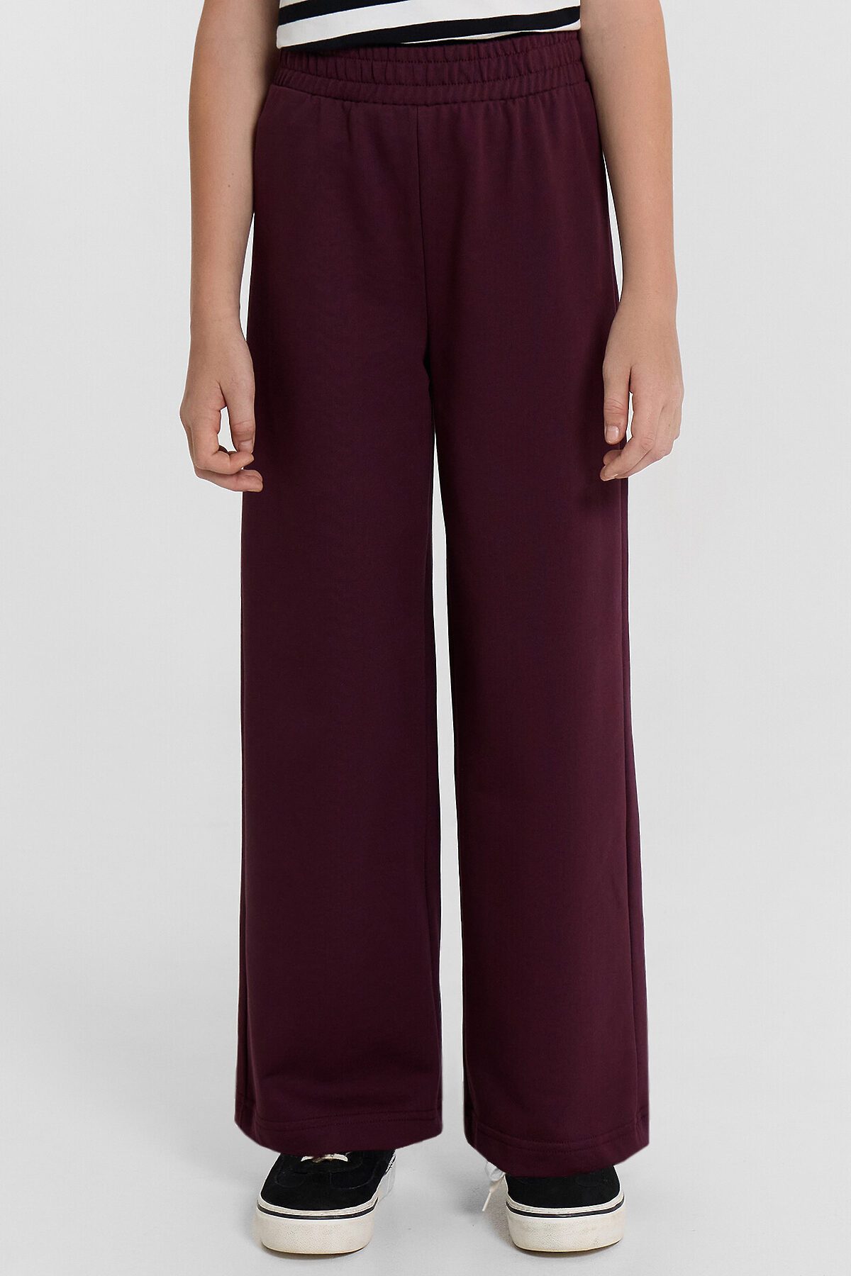 Брюки для девочек свободного силуэта — это удобная и практичная модель, идеально подходящая для активного дня, прогулок или школьного гардероба. Эластичный пояс обеспечивает комфортную посадку, мягко фиксируя изделие на талии, а отделочные строчки по поясу добавляют аккуратности и визуального интереса. Свободный крой не ограничивает движений, позволяя ребенку чувствовать себя свободно и уверенно. Низ брюк обработан швом вподгибку, что сохраняет форму изделия и подчеркивает качество пошива. Футер без подкладки — это плотный, но мягкий трикотаж, который хорошо пропускает воздух, устойчив к износу и приятен к телу. Такая модель легко сочетается с худи, футболками или джемперами, создавая комфортные и стильные образы на каждый день.