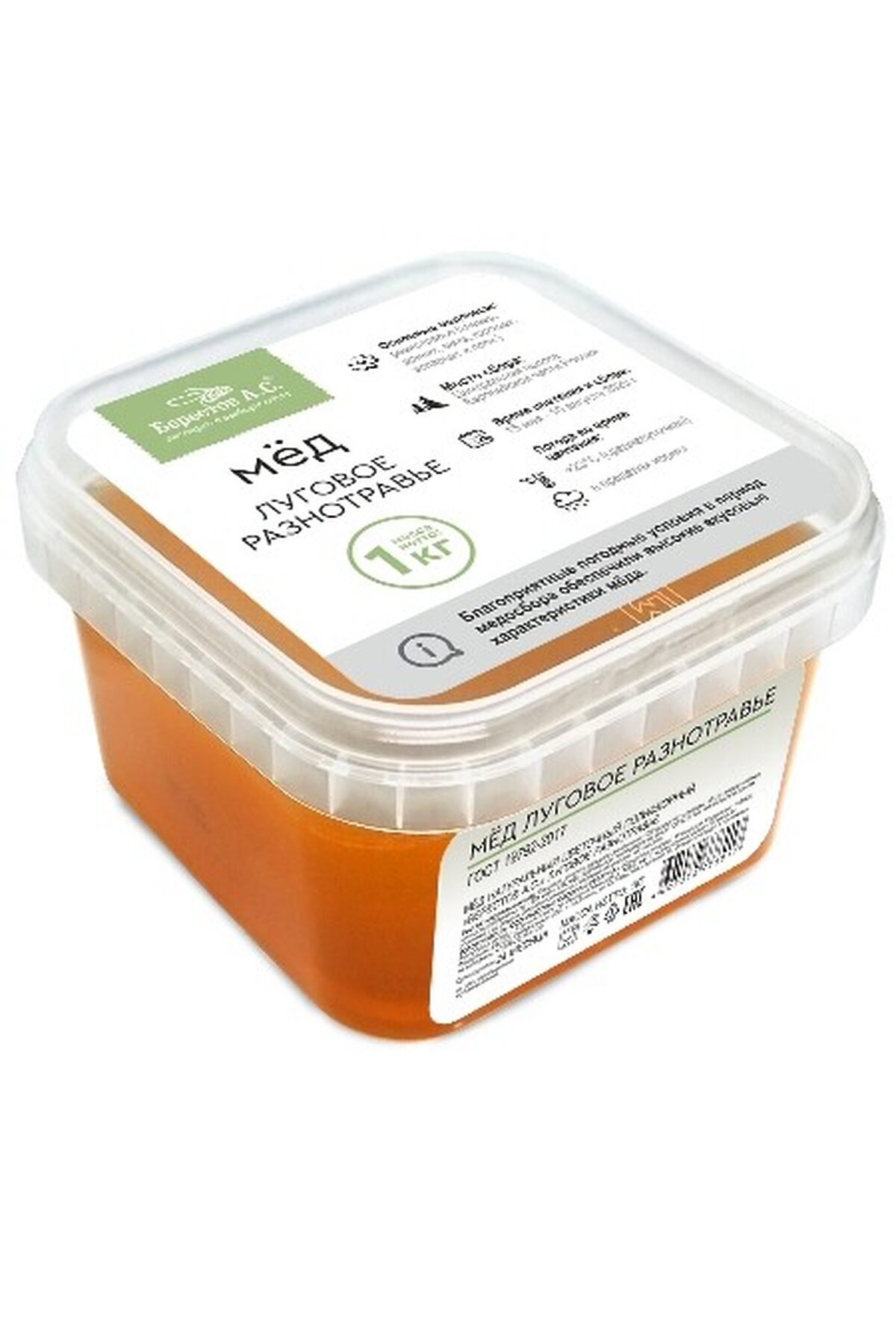 Мёд "Берестов А.С." Луговое разнотравье пэт банка 1000г ЭКОПРОДУКТЫ, -