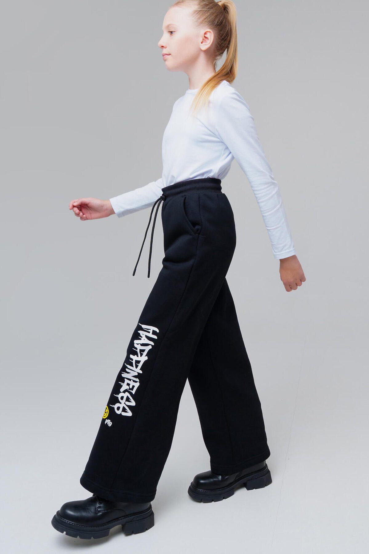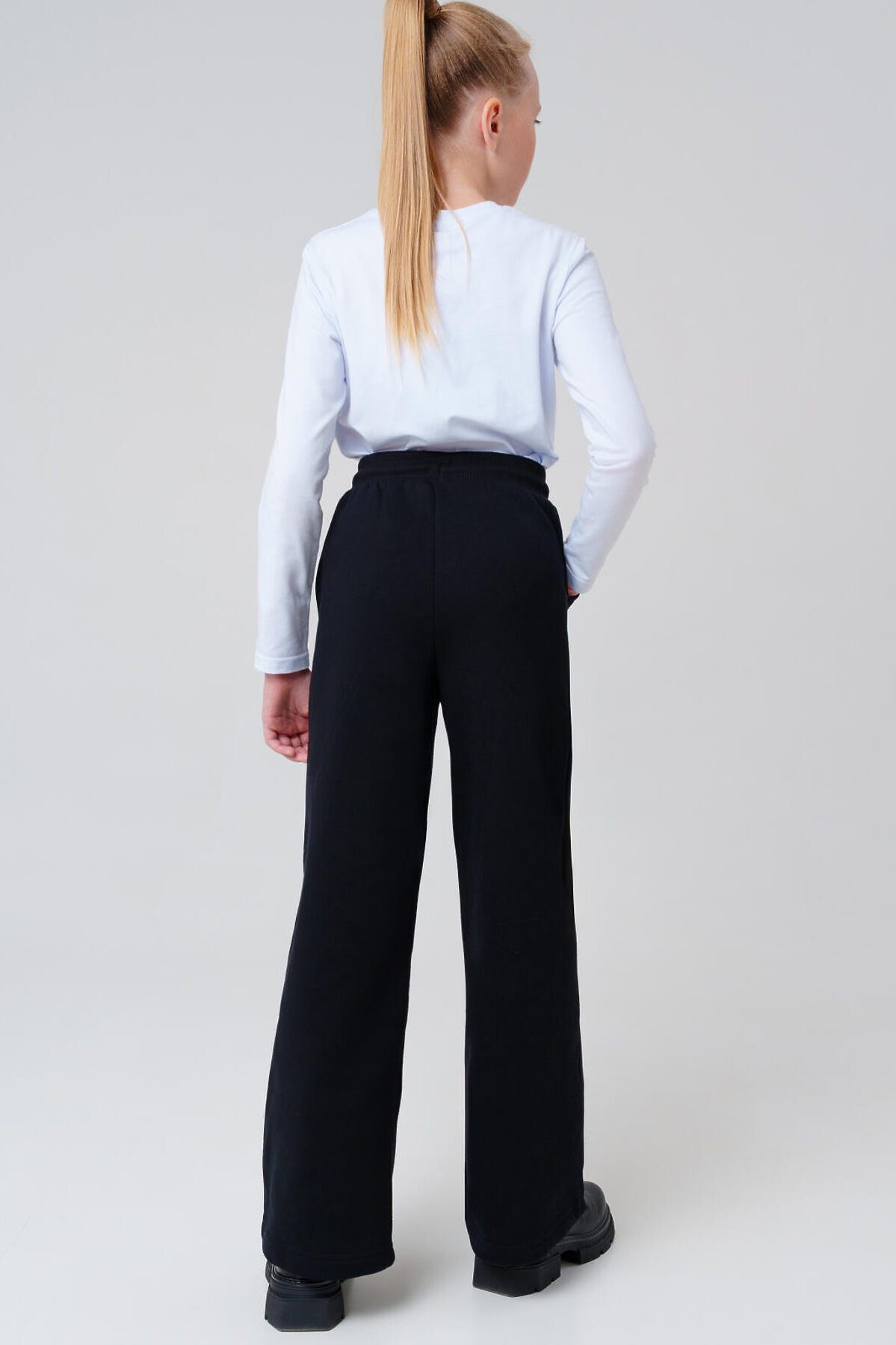 Брюки трубы из футера с начесом на резинке со шнурком для девочки подростка. Функциональные боковые карманы.
