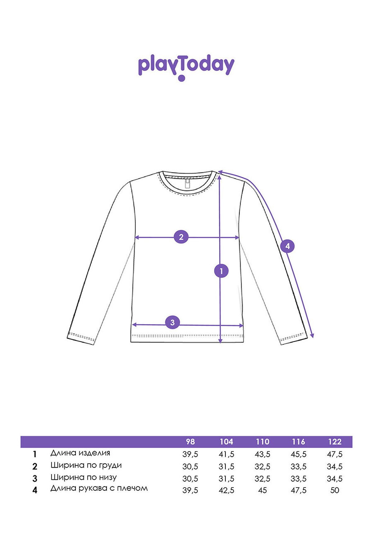 Детский трикотажный лонгслив для мальчика от PlayToday. Современный лонгслив — удобная футболка с длинными рукавами, которая подойдёт и для детского сада, и для прогулок. Модель выполнена из мягкого эластичного трикотажа, ткань дышит, не раздражает кожу и обеспечивает комфорт в течение всего дня. Преимущества модели: + натуральный хлопок — гипоаллергенный и безопасный для кожи ребёнка + добавление эластана — свобода движений и идеальная посадка + длинные рукава — защита в прохладное время года + универсальный крой — подходит и в садик, и для активного отдыха Советы по стилю от PlayToday: Такой лонгслив отлично комбинируется с джинсами или спортивными брюками PlayToday. Для повседневного образа добавьте кроссовки, а для праздника— более классические брюки и жилет. Когда и как носить: Идеален для учёбы, прогулок на свежем воздухе, занятий спортом или путешествий. Легко становится частью многослойного образа под худи или куртку. Размеры: Представлен в размерах 98-122 подойдет для мальчиков дошкольного возраста от 3 до 7 лет. Модный лонгслив для мальчика от PlayToday — стиль и комфорт каждый день!