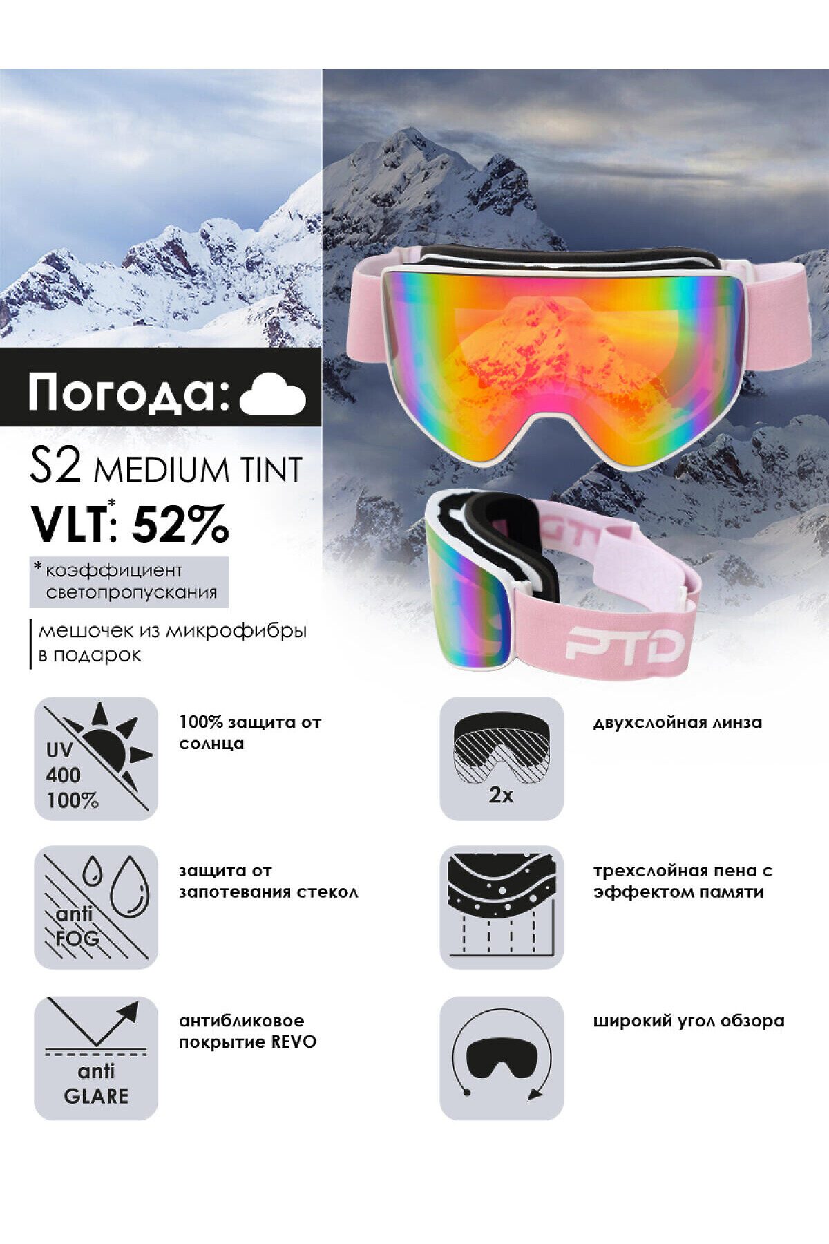 Маска горнолыжная для взрослых