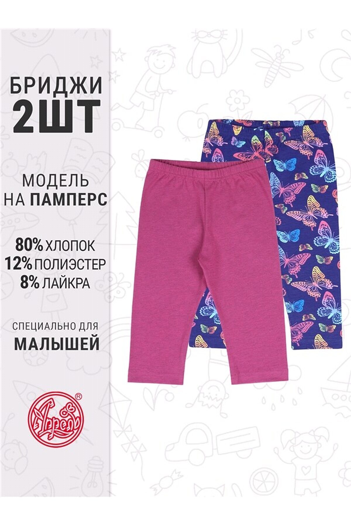 Бриджи, 2 шт. АПРЕЛЬ, бабочки неон+ярко-розовый188