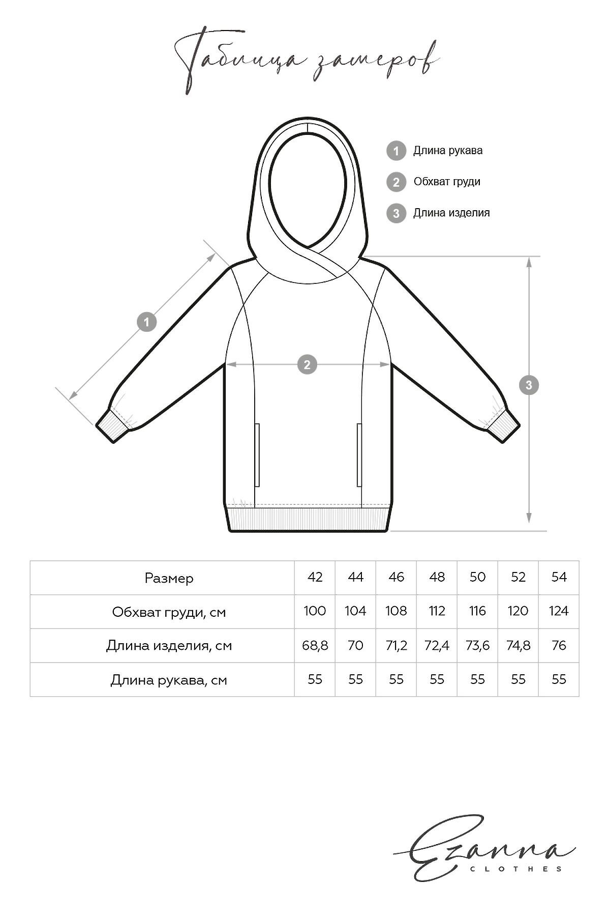 Стильное худи из высококачественного хлопкового полотна премиум класса компакт пенье - футер 3х-нитка с начёсом. Идеально для демисезона и зимнего периода. Немного удлиненная модель с объемным капюшоном на запАхе, уютно закрывающим шею. Модель с геометричными строчками и скрытыми удобными карманами, с именным шевроном с логотипом Ezanna, манжет и низ изделия выполнен из качественного эластичного материала в рубчик.