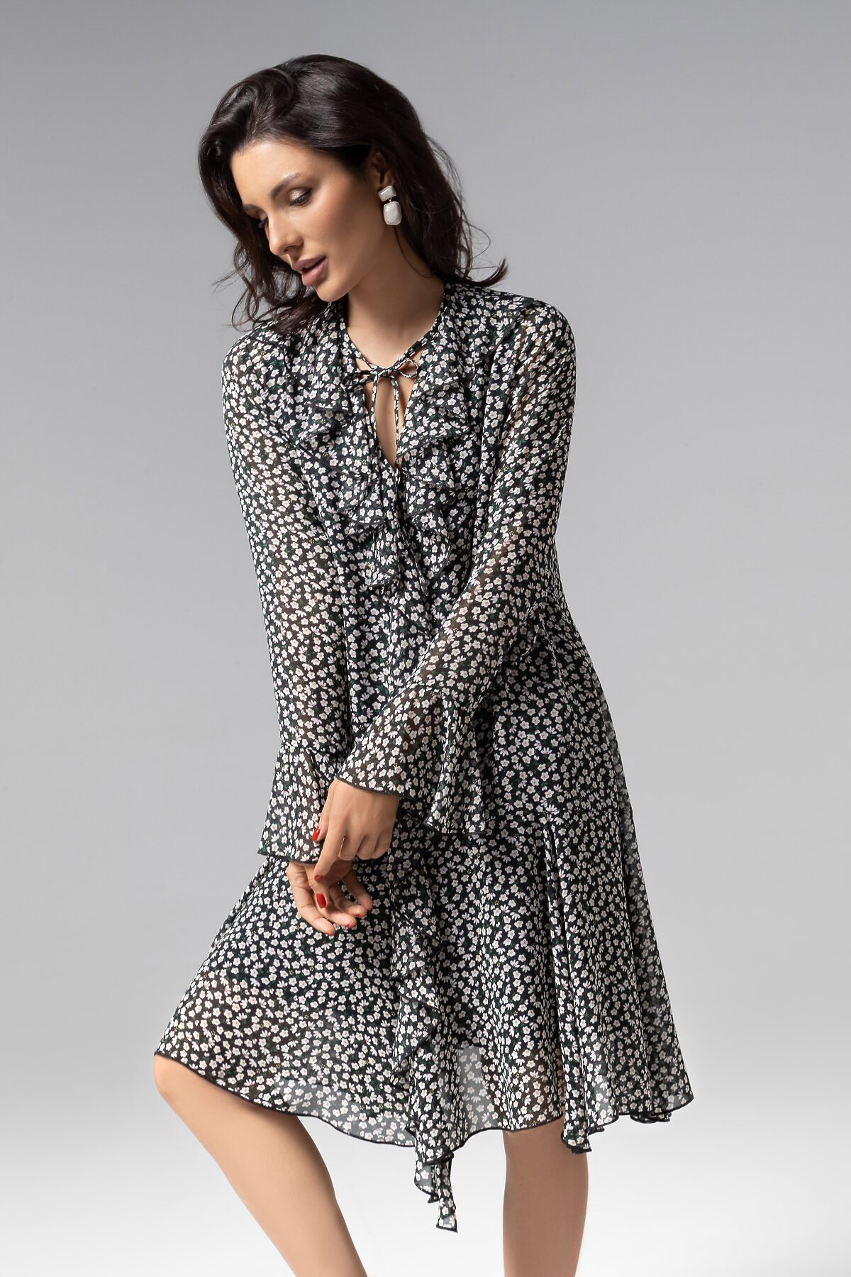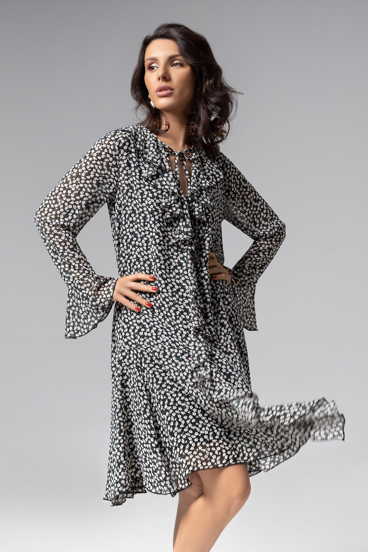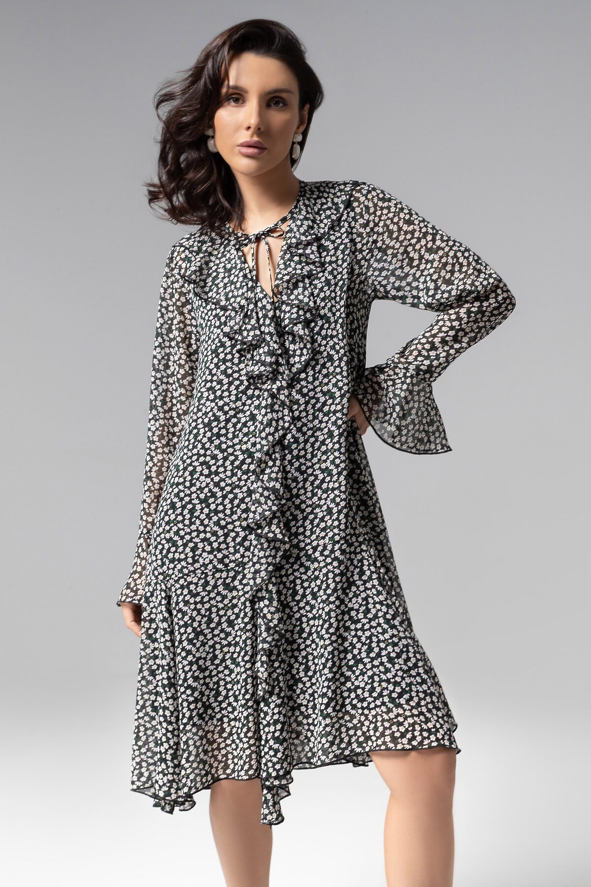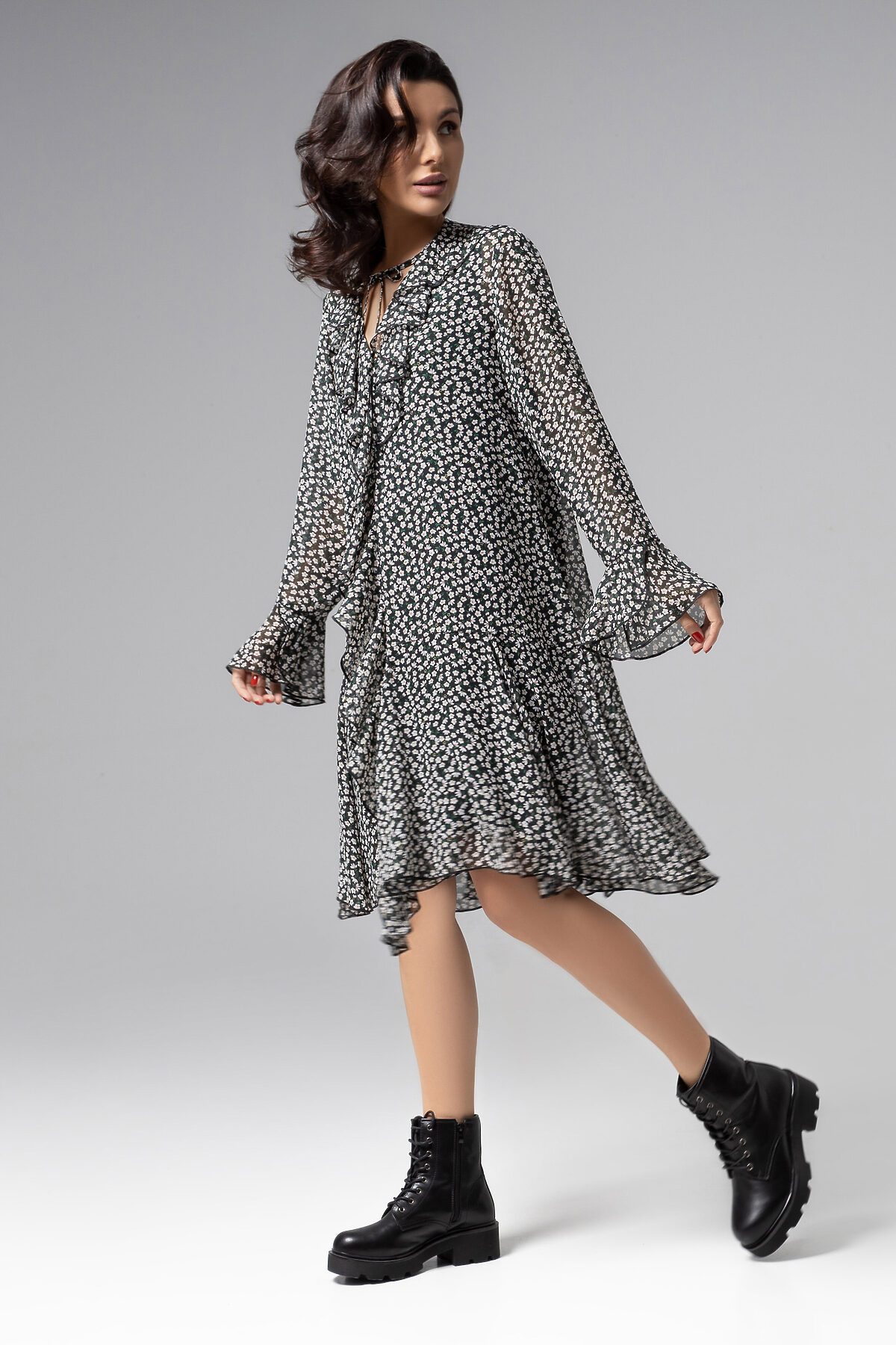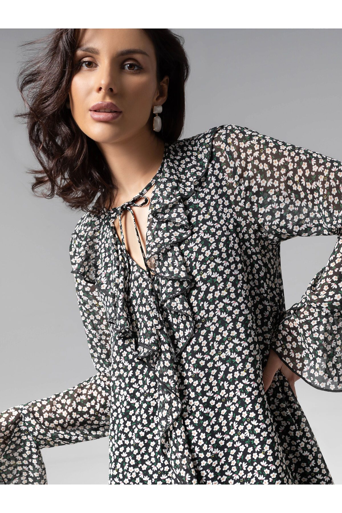 Легкость встречается с изысканностью. Воланы создают динамичный силуэт, а невесомая ткань, словно сотканная из теплого ветра, мягко обволакивает фигуру, подчеркивая её естественную гармонию. Универсальный крой, продуманный до мелочей, создает идеальные пропорции на любом типе фигуры. Воплощенная нежность бохо-эстетики, где каждая складка шепчет о свободе и женственности. Платье в длине до колена. Дополнено завязками в зоне декольте. Изделие с подкладом.