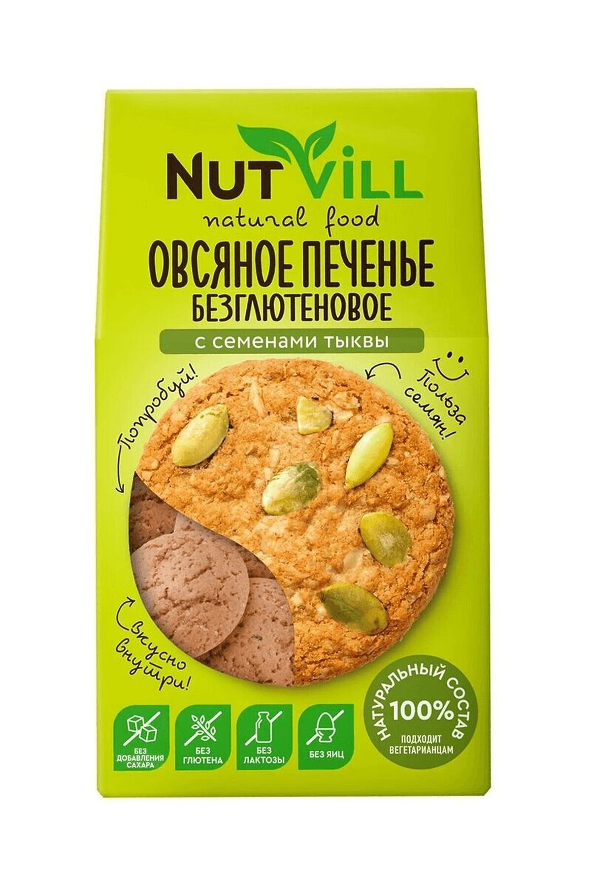 Печенье овсяное с семенами тыквы без сахара и глютена 85г ЭКОПРОДУКТЫ, -