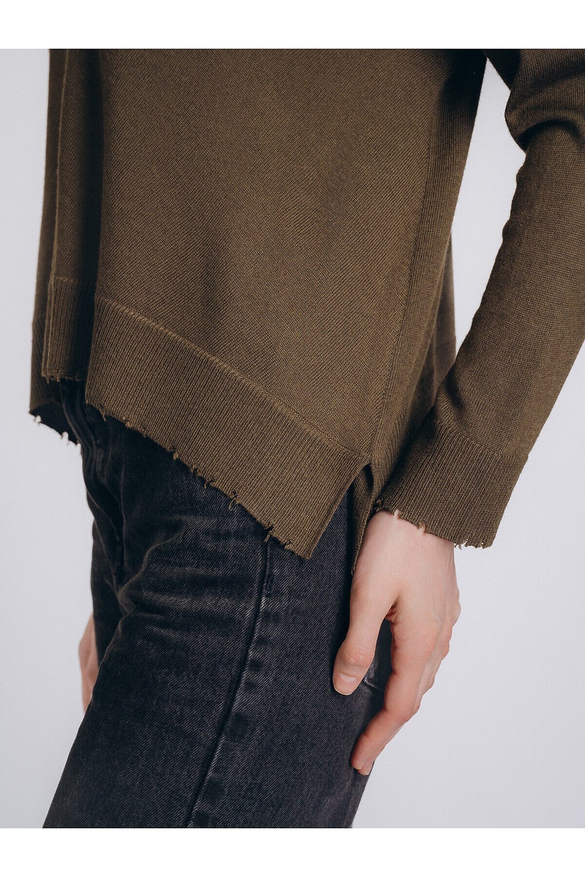 Женская кофта бренда Indefini выполнена в приглушённом оливковом цвете из мягкой смесовой ткани с высоким содержанием полиэстера, акрила, нейлона и шерсти. Лёгкая дышащая ткань и свободный крой с асимметричным низом обеспечивают комфорт и свободу движений. Сдержанный оттенок и лаконичный дизайн придают образу утончённость и современную лаконичность, делая эту кофту универсальным элементом повседневного гардероба.