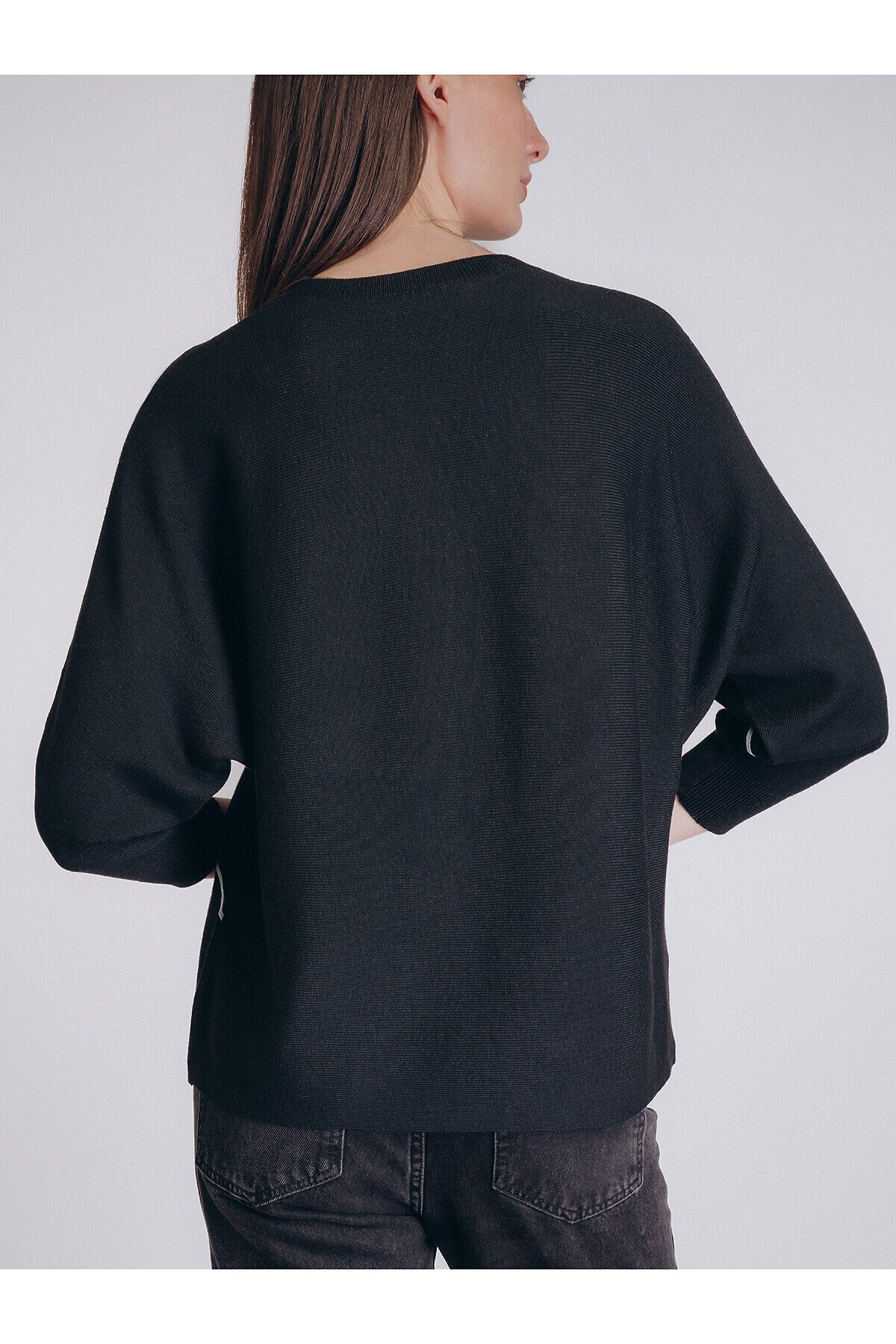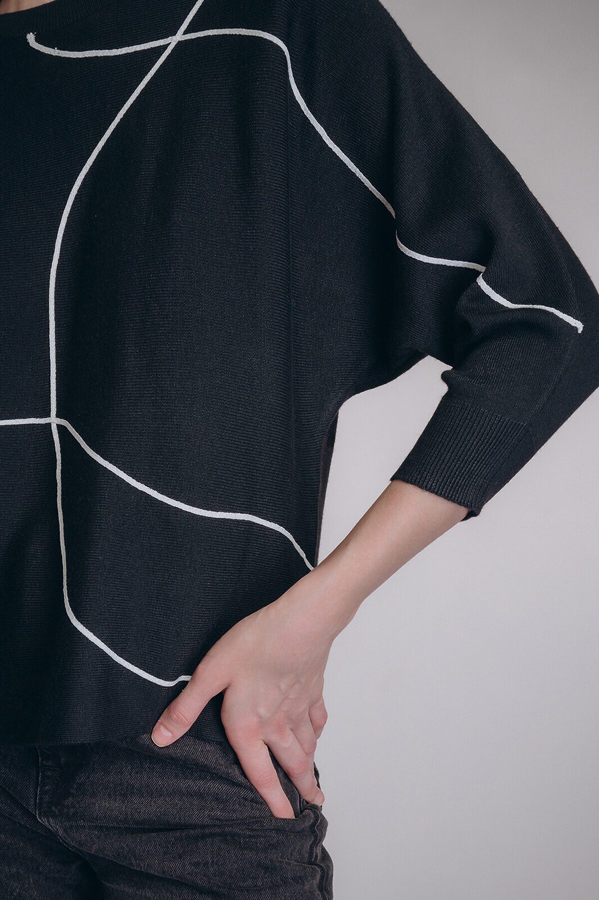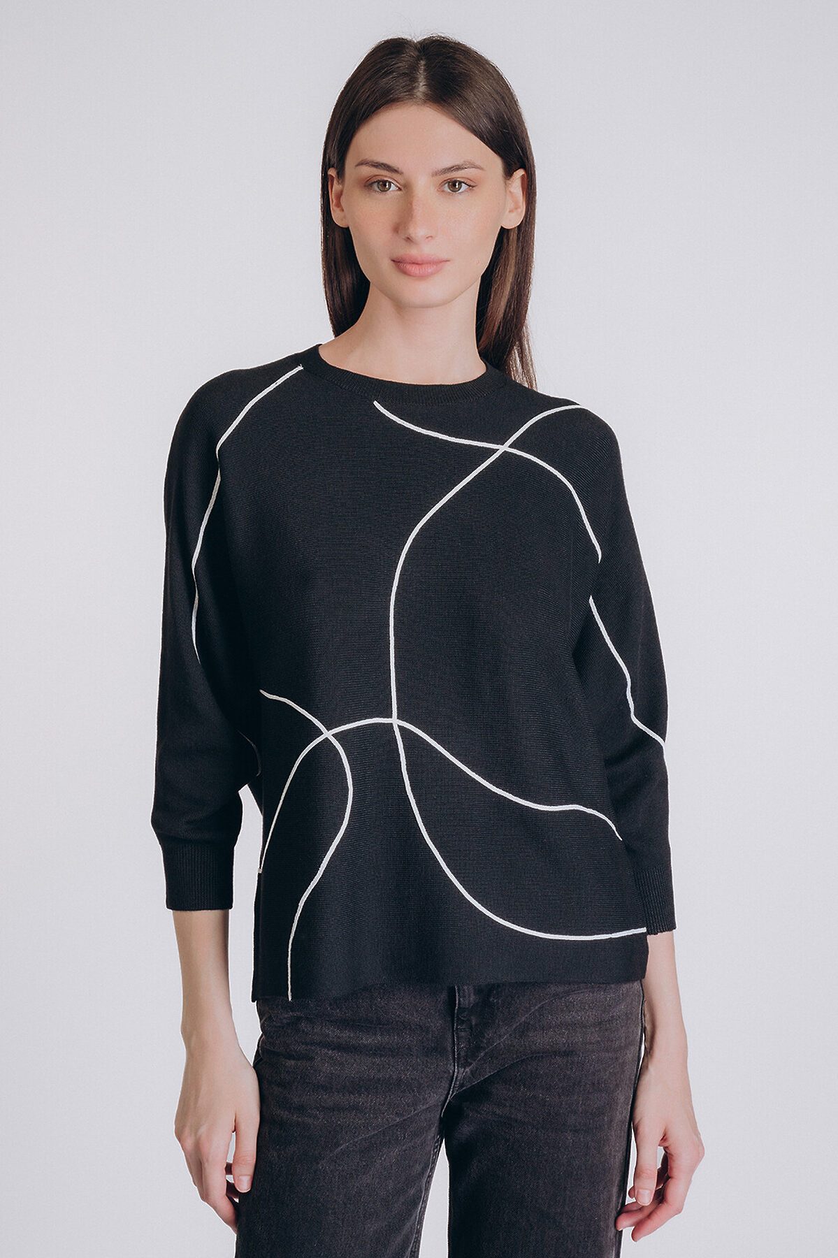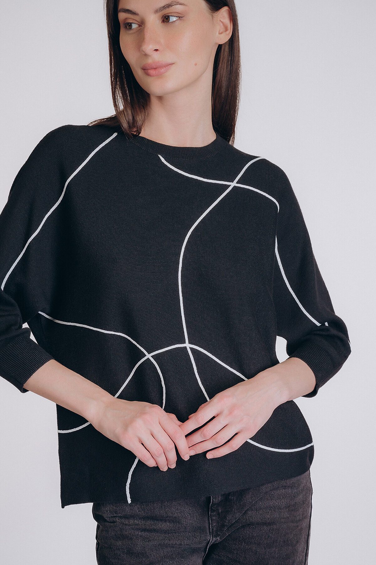 Женская кофта бренда Indefini выполнена в глубокий черный цвет с абстрактным светлым узором. Модель изготовлена из мягкой смесовой ткани с высоким содержанием полиэстера, а также добавлением шерсти, нейлона и акрила. Легкая и приятная к телу ткань в сочетании со свободным кроем обеспечивает комфорт и свободу движений. Современный дизайн с оригинальным узором придает образу стильную лаконичность и делает кофту универсальным элементом гардероба для любого случая.
