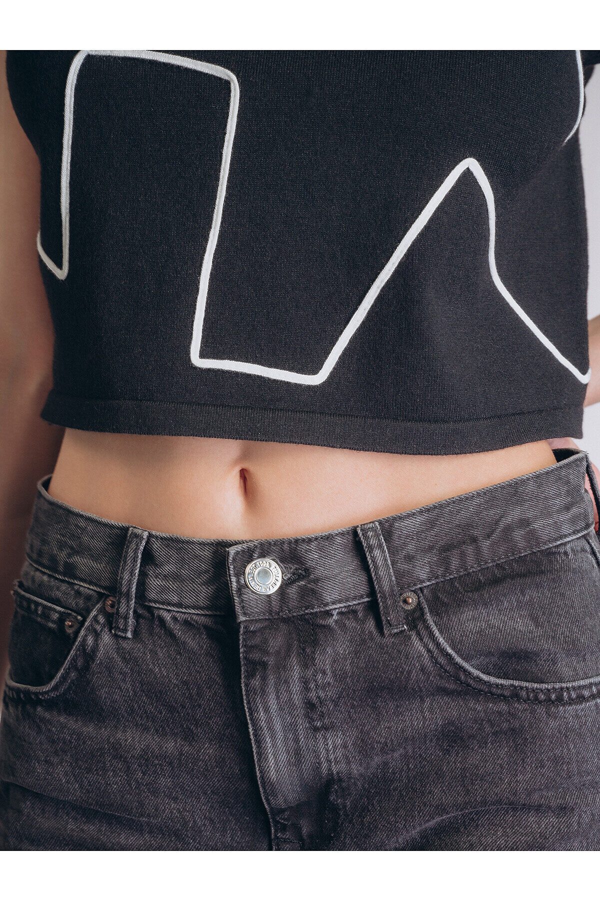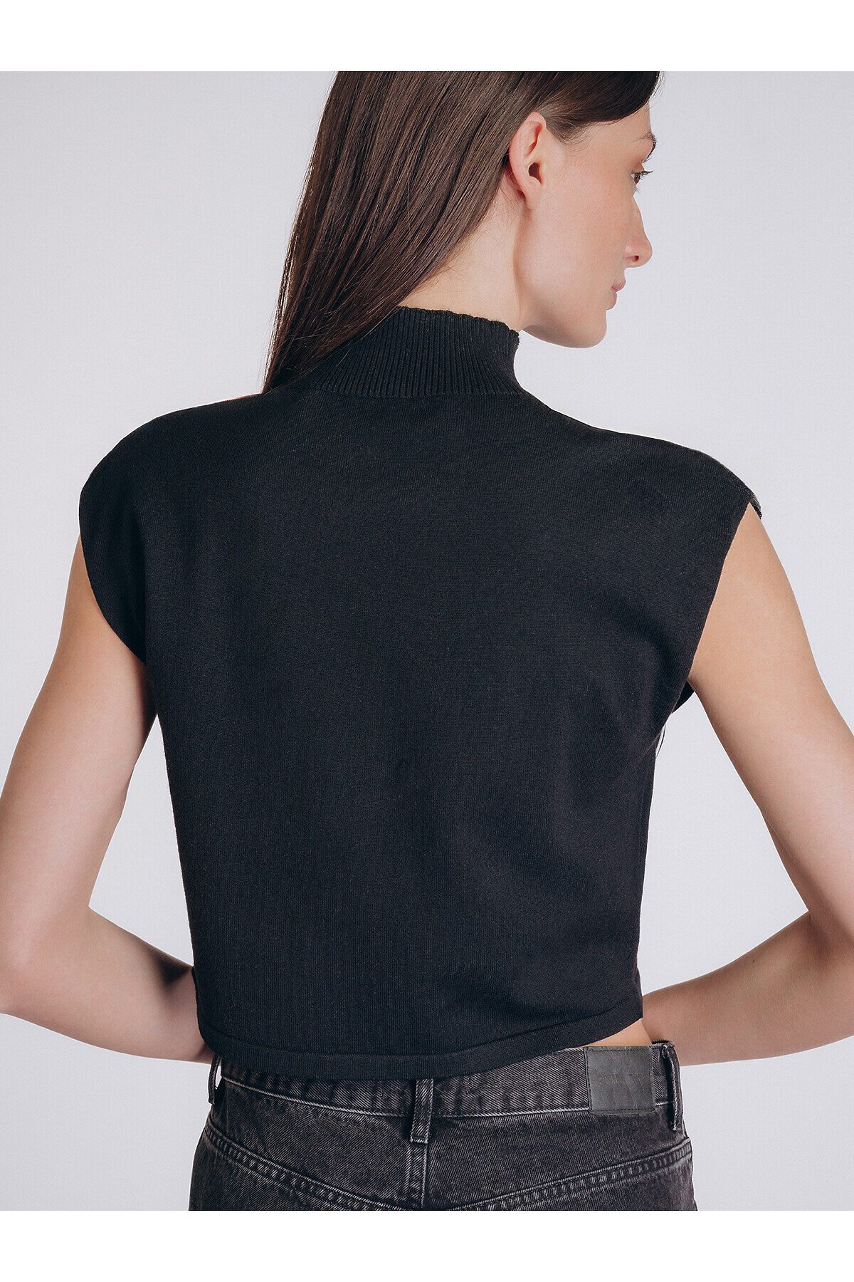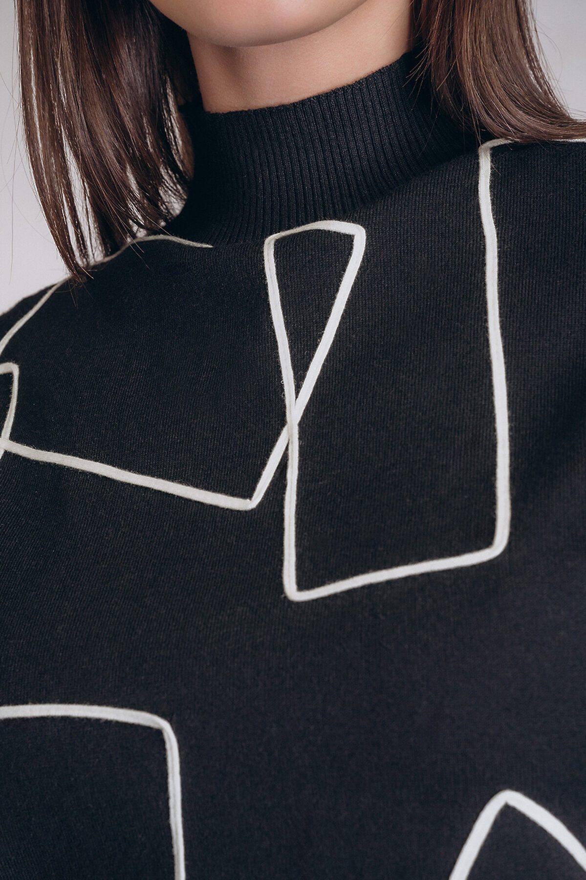 Женский укороченный джемпер без рукавов бренда Indefini выполнен в классическом черном цвете с контрастным белым геометрическим узором. Модель изготовлена из мягкой и приятной к телу ткани, которая обеспечивает комфорт и свободу движений. Высокий ворот и свободный крой подчеркивают современный стиль, а лаконичный дизайн делает топ универсальным элементом гардероба. Глубокий черный оттенок и оригинальный принт придают образу выразительность и актуальность.