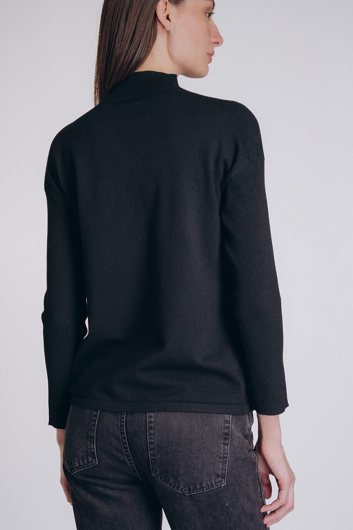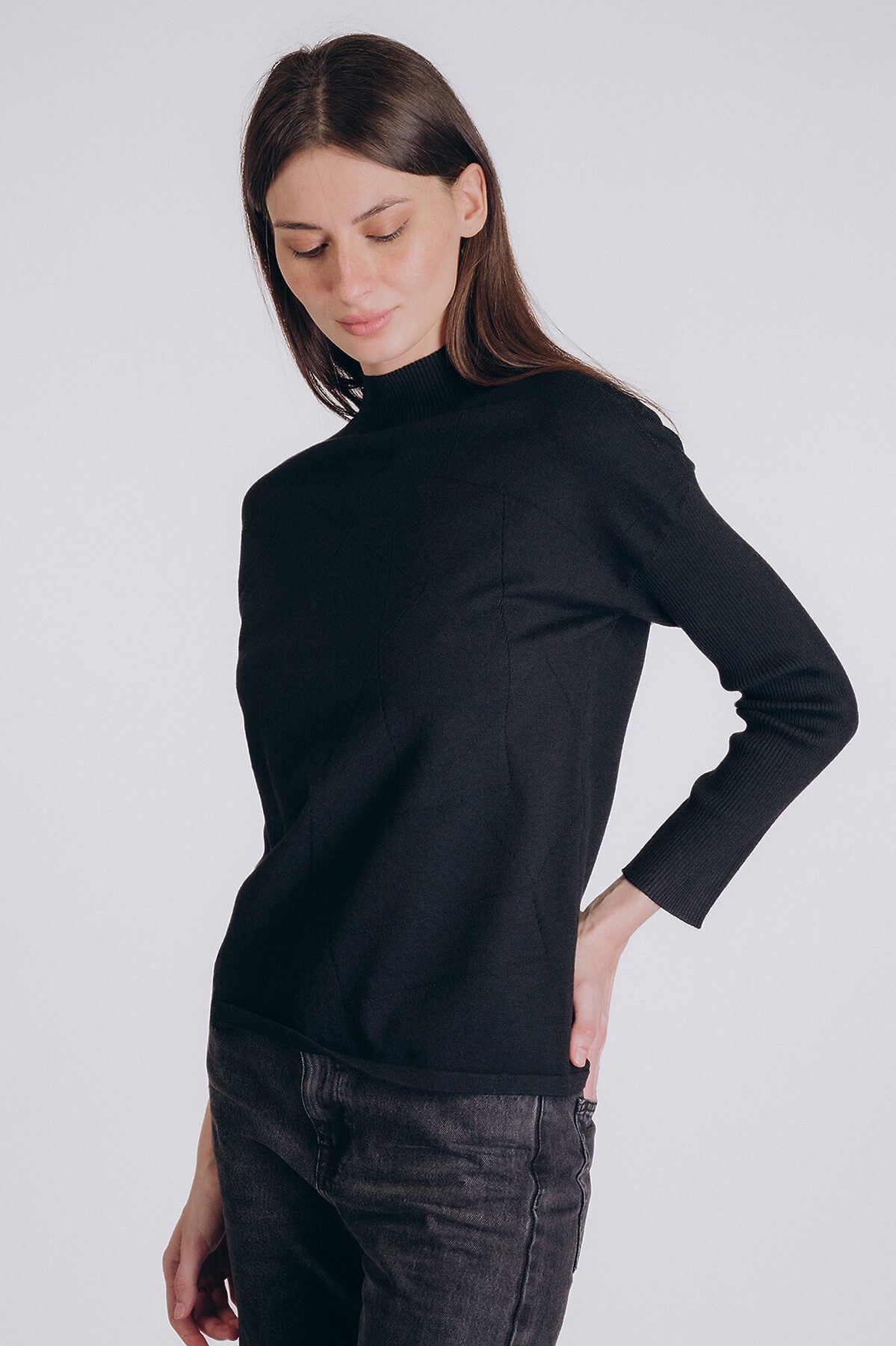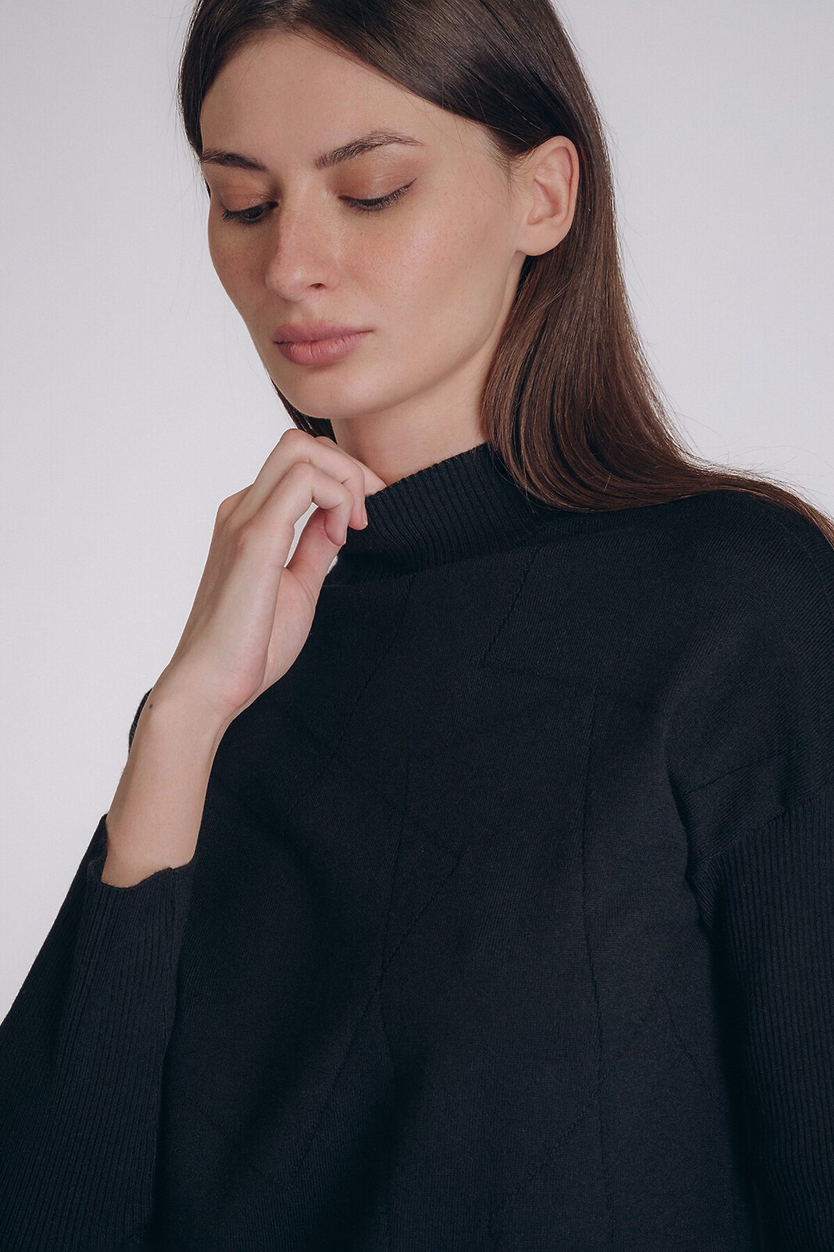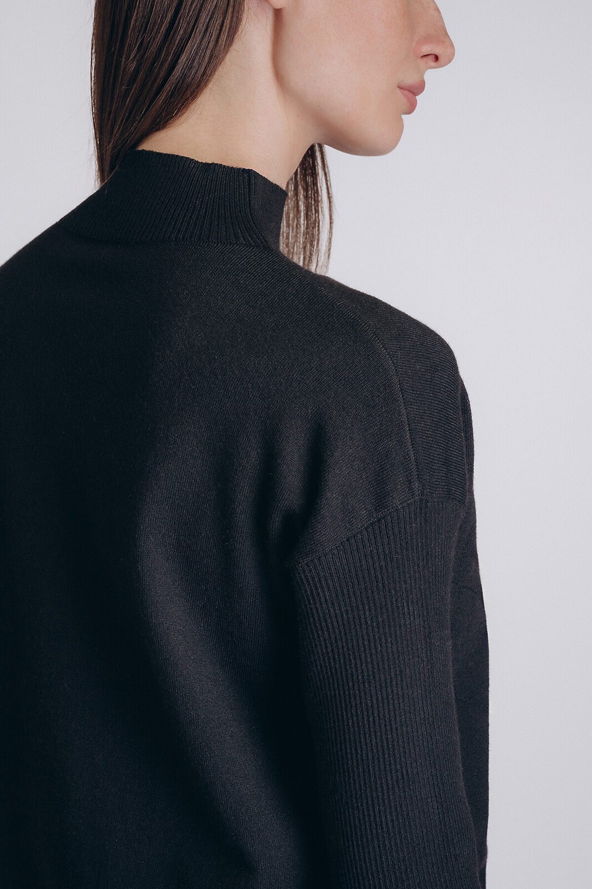 Женская кофта бренда Indefini выполнена в классическом черном цвете из мягкого полиэстера. Лёгкая дышащая ткань и продуманный крой с высоким воротом и длинными рукавами обеспечивают комфорт и свободу движений в течение всего дня. Глубокий черный оттенок и лаконичный дизайн придают образу утончённость и современную элегантность, делая эту кофту универсальным элементом гардероба.