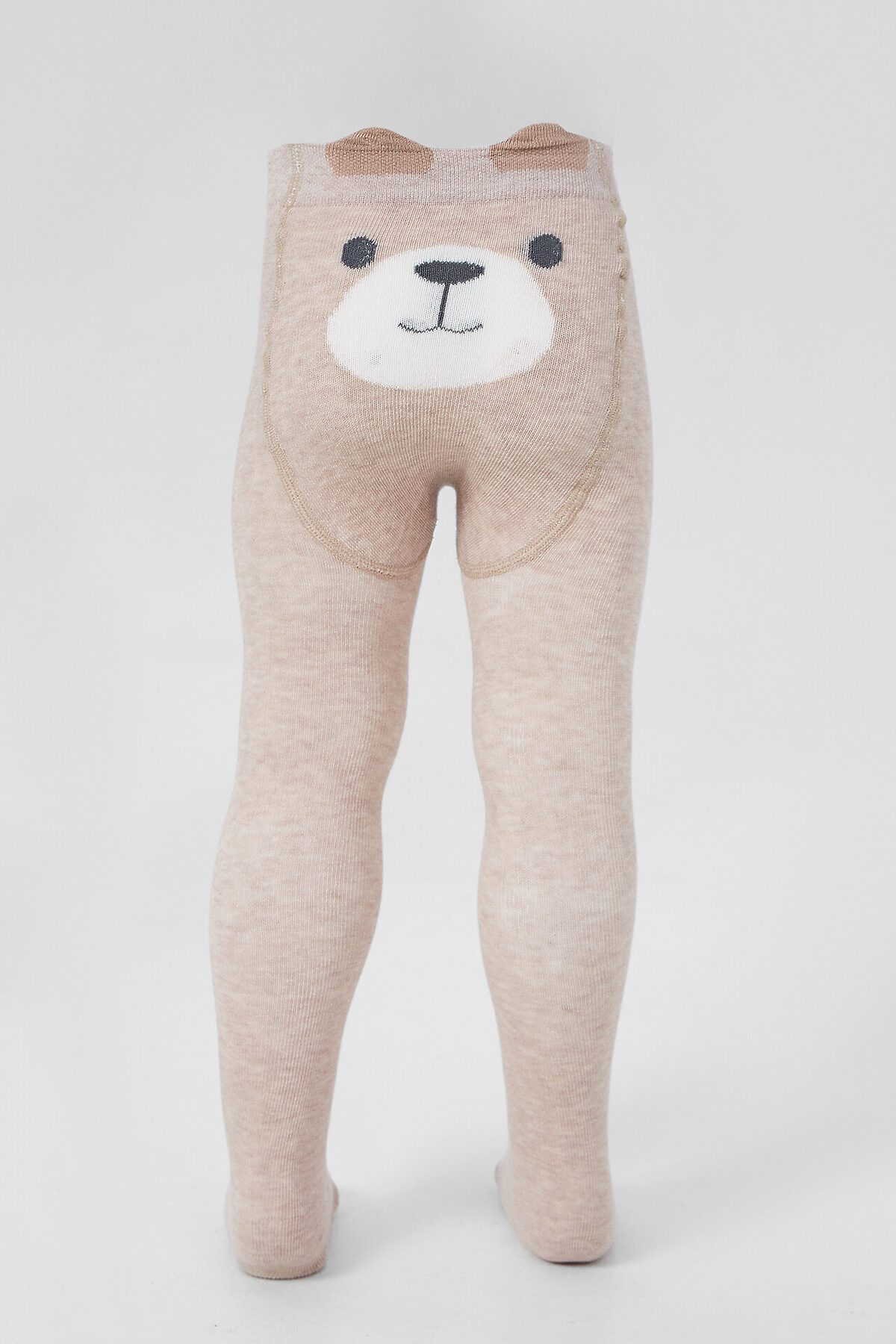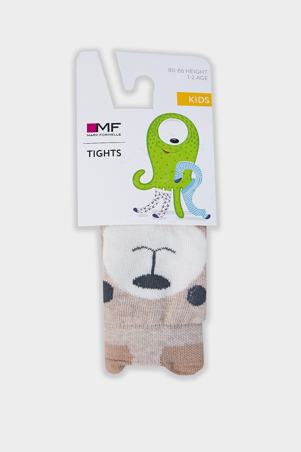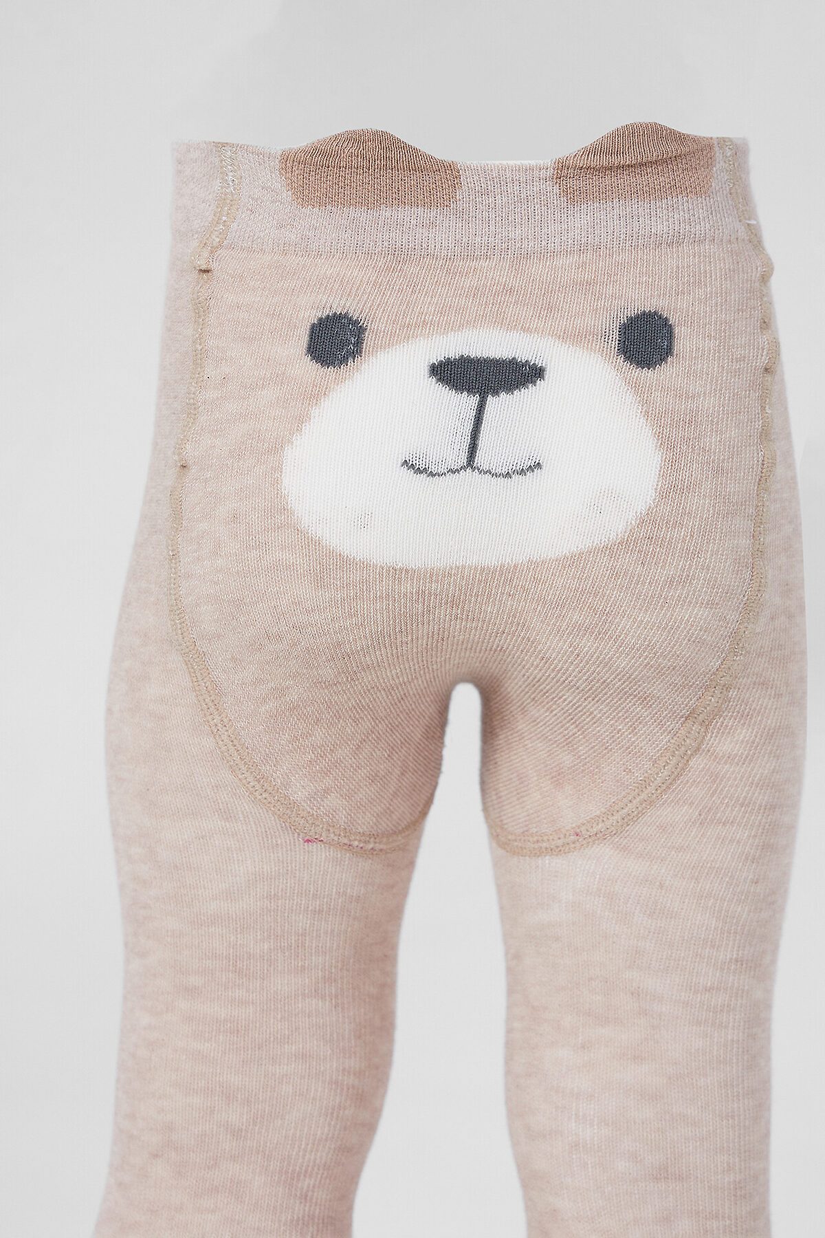 рис.3247 Гладкие колготки с рисунком в виде морды мишки на ластовице.