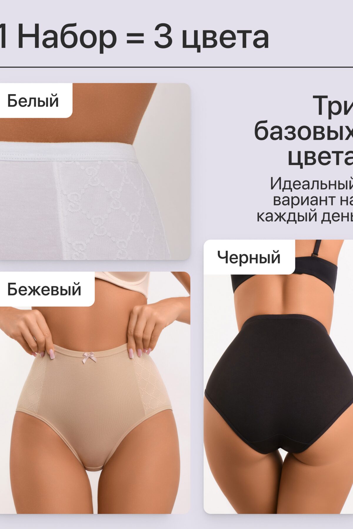 Набор трусов OIRO 3902 3 шт. хлопковые высокие НАТАЛИ, черн,бел,беж