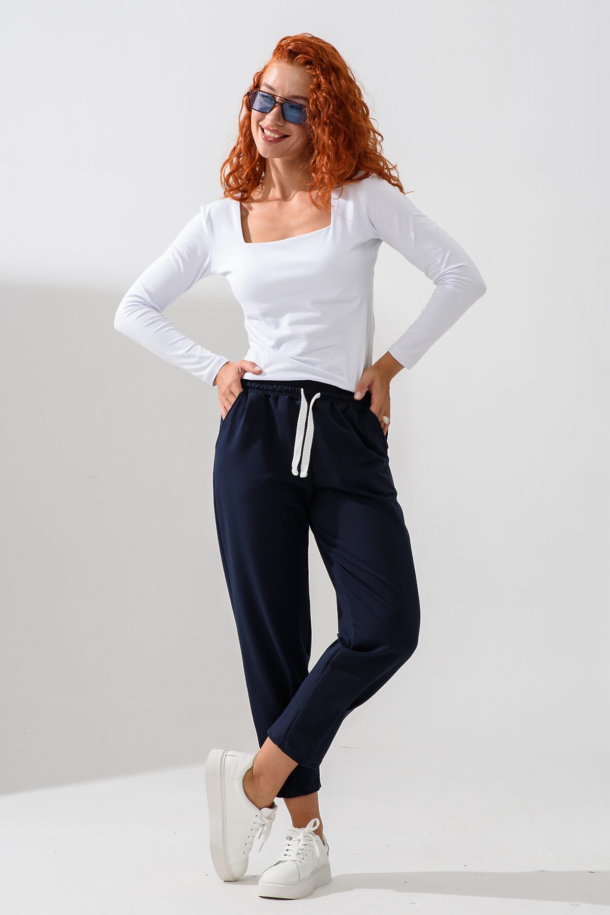 Брюки - бананы. Эластичный пояс с завязками для удобной посадки. Два глубоких боковых кармана. Защипы внизу штанин удлиняют ноги и создают женственный силуэт. Подходят всем. Широкая размерная линейка от 42-58. Для любого типа фигуры.