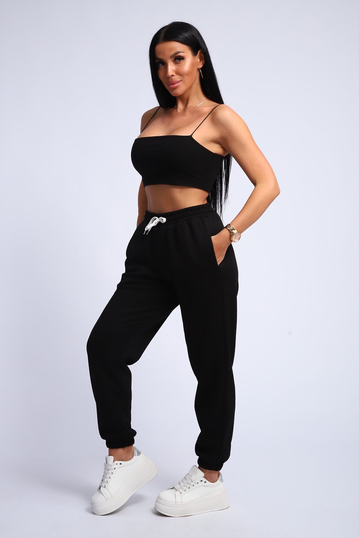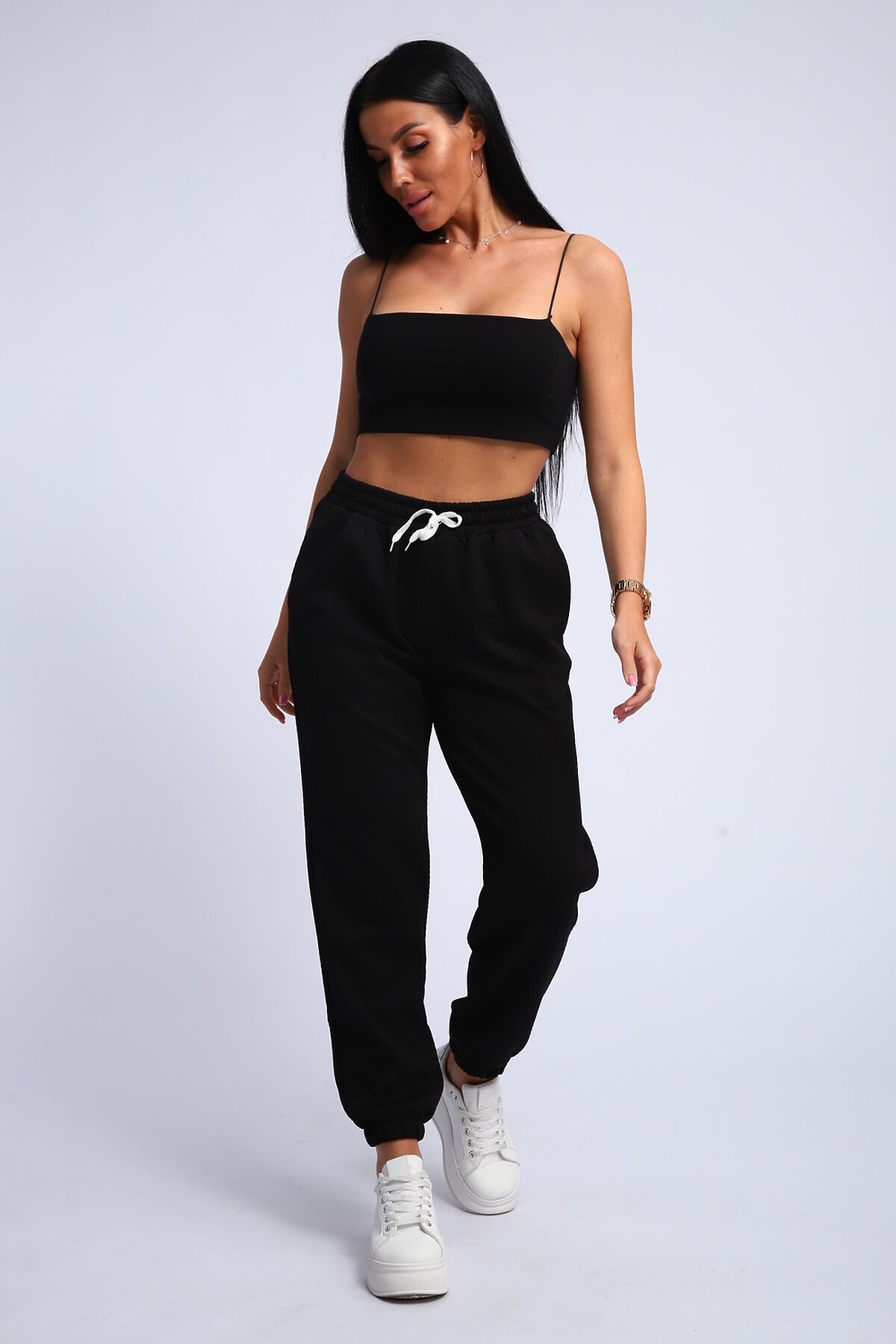 Женские спортивные брюки на резинке: комфорт и стиль в каждой детали Ищете идеальные женские спортивные брюки, сочетающие удобство и актуальный дизайн? Наши брюки спортивного стиля с резинкой внизу и на поясе это то, что вам нужно! Эти брюки прекрасный выбор для занятий спортом, прогулок или создания расслабленного повседневного образа. Благодаря эластичной резинке на щиколотках, брюки отлично сидят по фигуре, не сковывают движений и подчеркивают ваш силуэт. Резинка на поясе обеспечивает комфортную посадку и надежную фиксацию. В нашем ассортименте представлены женские брюки спортивного кроя из различных материалов: дышащего хлопка, практичного полиэстера и эластичного трикотажа. Выбирайте модель, которая идеально подойдет вам по стилю и назначению. Купите женские спортивные брюки на резинке в нашем интернет-магазине и наслаждайтесь комфортом и свободой движений! Широкий выбор размеров и цветов, быстрая доставка и доступные цены. Обновите свой гардероб прямо сейчас! Ключевые слова: женские спортивные штаны, брюки на резинке, спортивные брюки женские купить, брюки спортивного стиля.