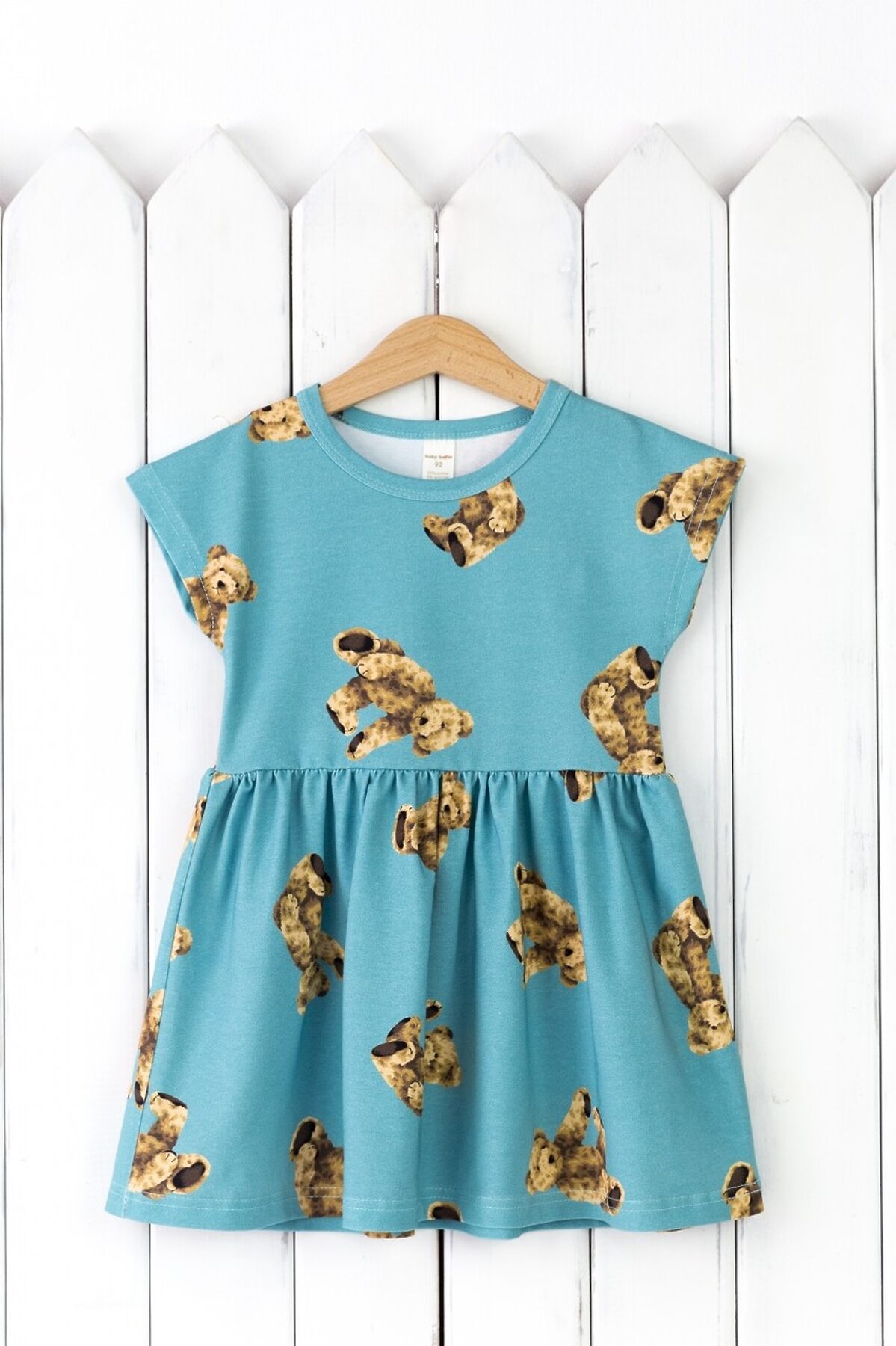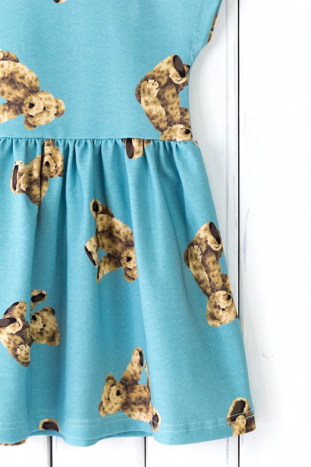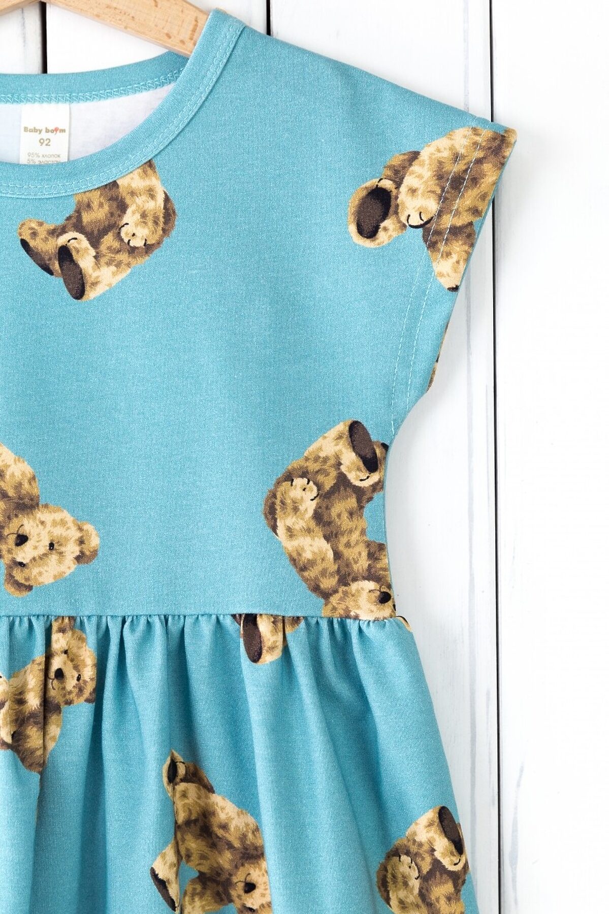 Платья со спущенным плечом, отрезное по линии талии. Выполнена из принтованной кулирки, 95% хлопок, 5% эластан.