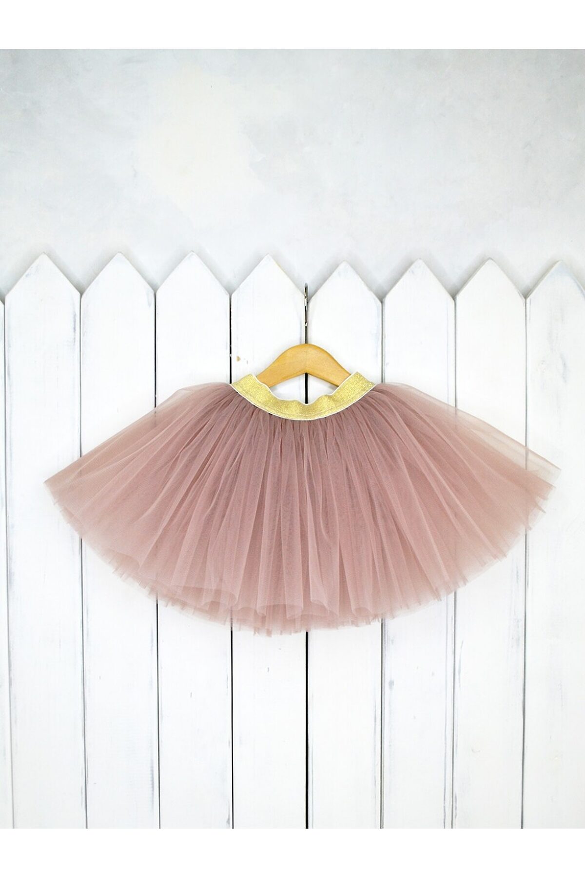 Трехслойная юбочка-туту из фатина, с поясом из золотой эластичной тесьмы, без подклада.