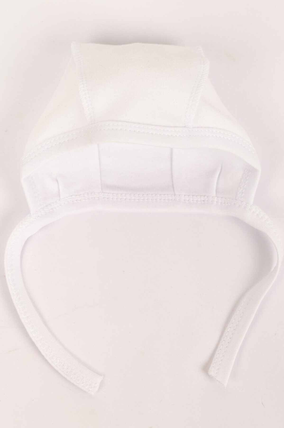 Чепчик из однотонного интерлока (100% хлопок), выполнен швами наружу.