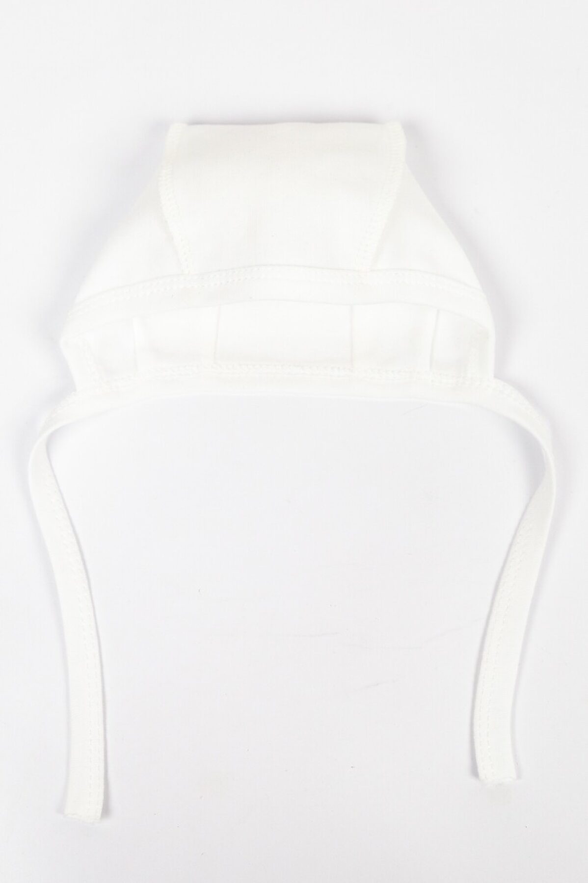 Чепчик из однотонного интерлока (100% хлопок), выполнен швами наружу.