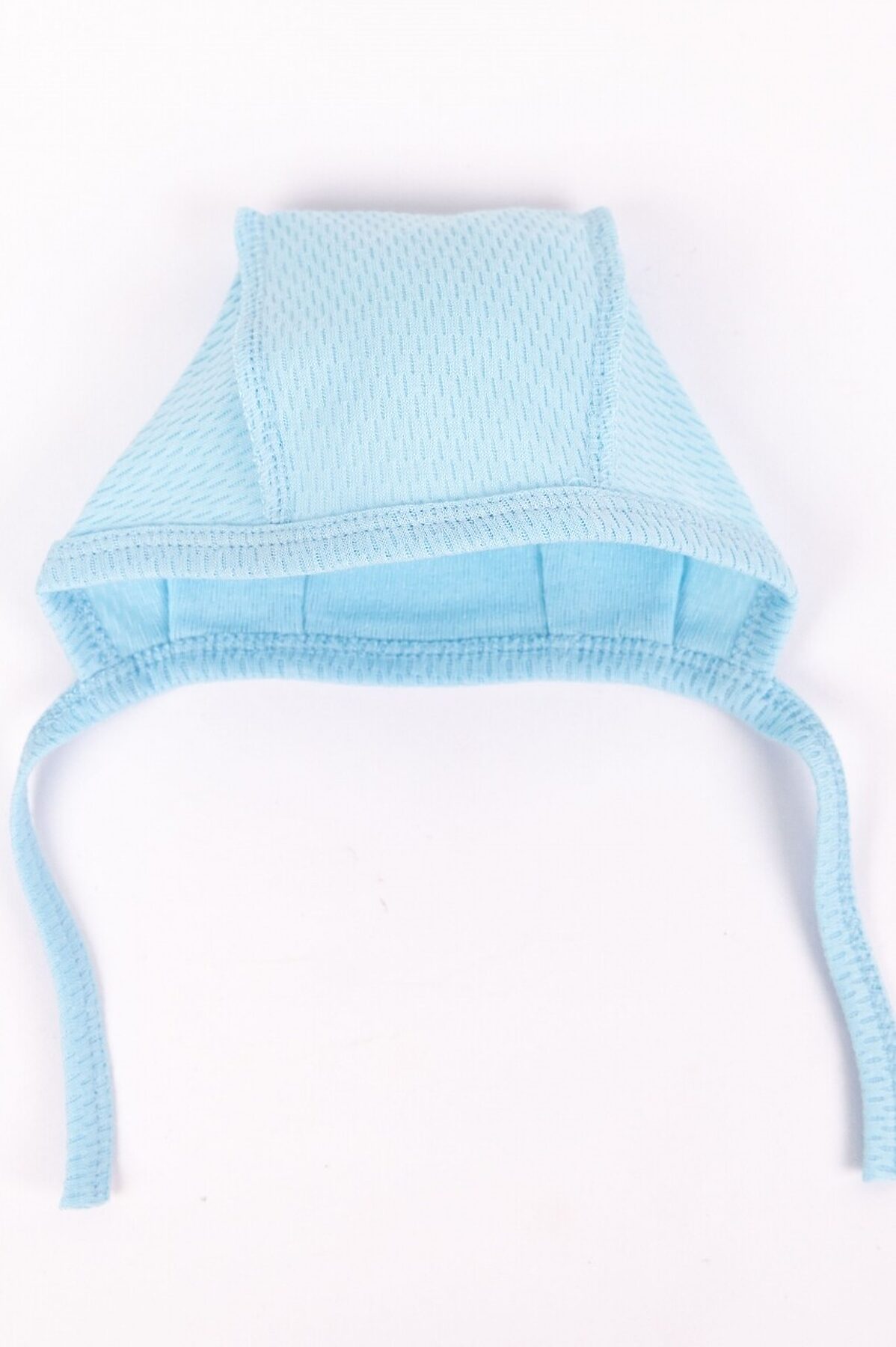 Чепчик из однотонного интерлока жакард (100% хлопок), выполнен швами наружу.