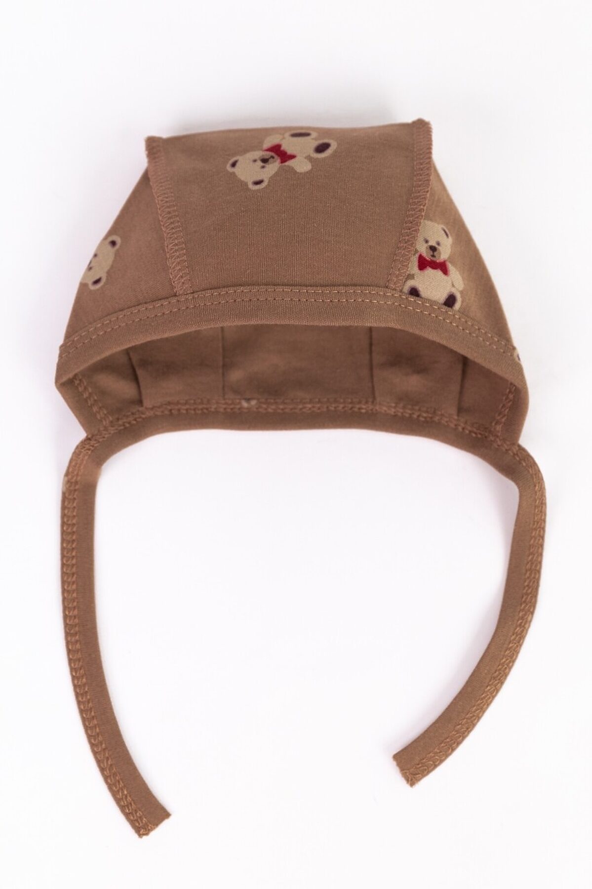 Чепчик из набивного интерлока (100% хлопок), выполнен швами наружу.