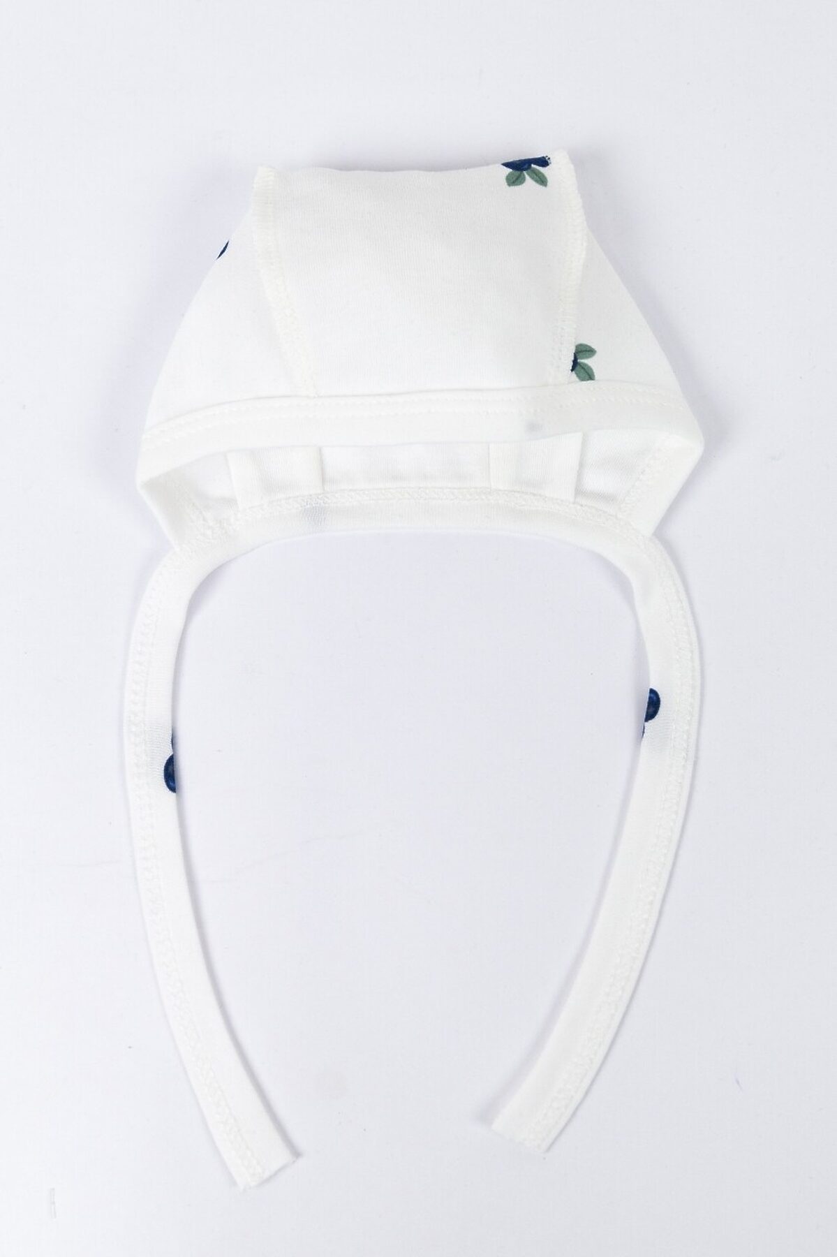 Чепчик из набивного интерлока (100% хлопок), выполнен швами наружу.