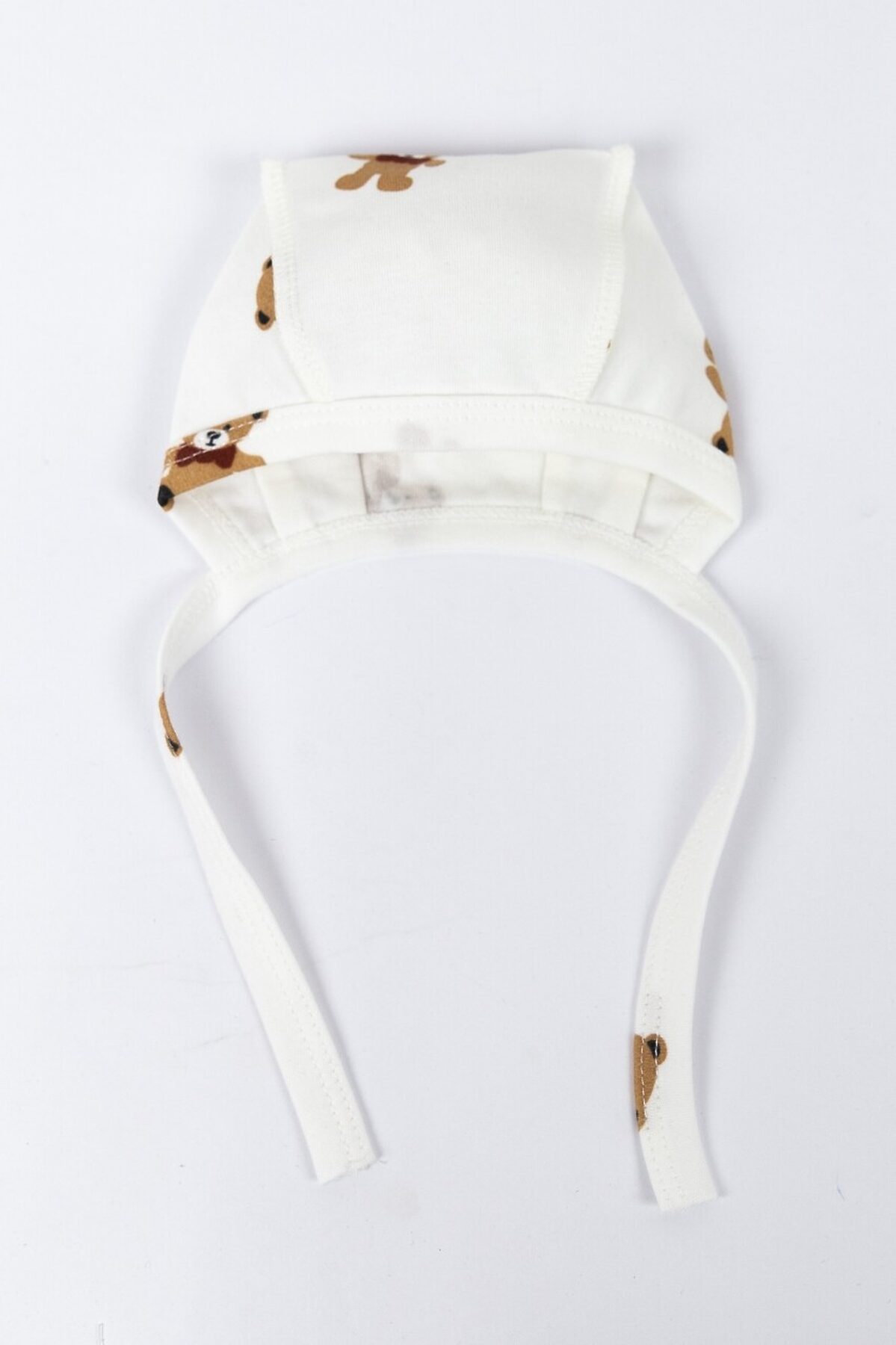 Чепчик из набивного интерлока (100% хлопок), выполнен швами наружу.