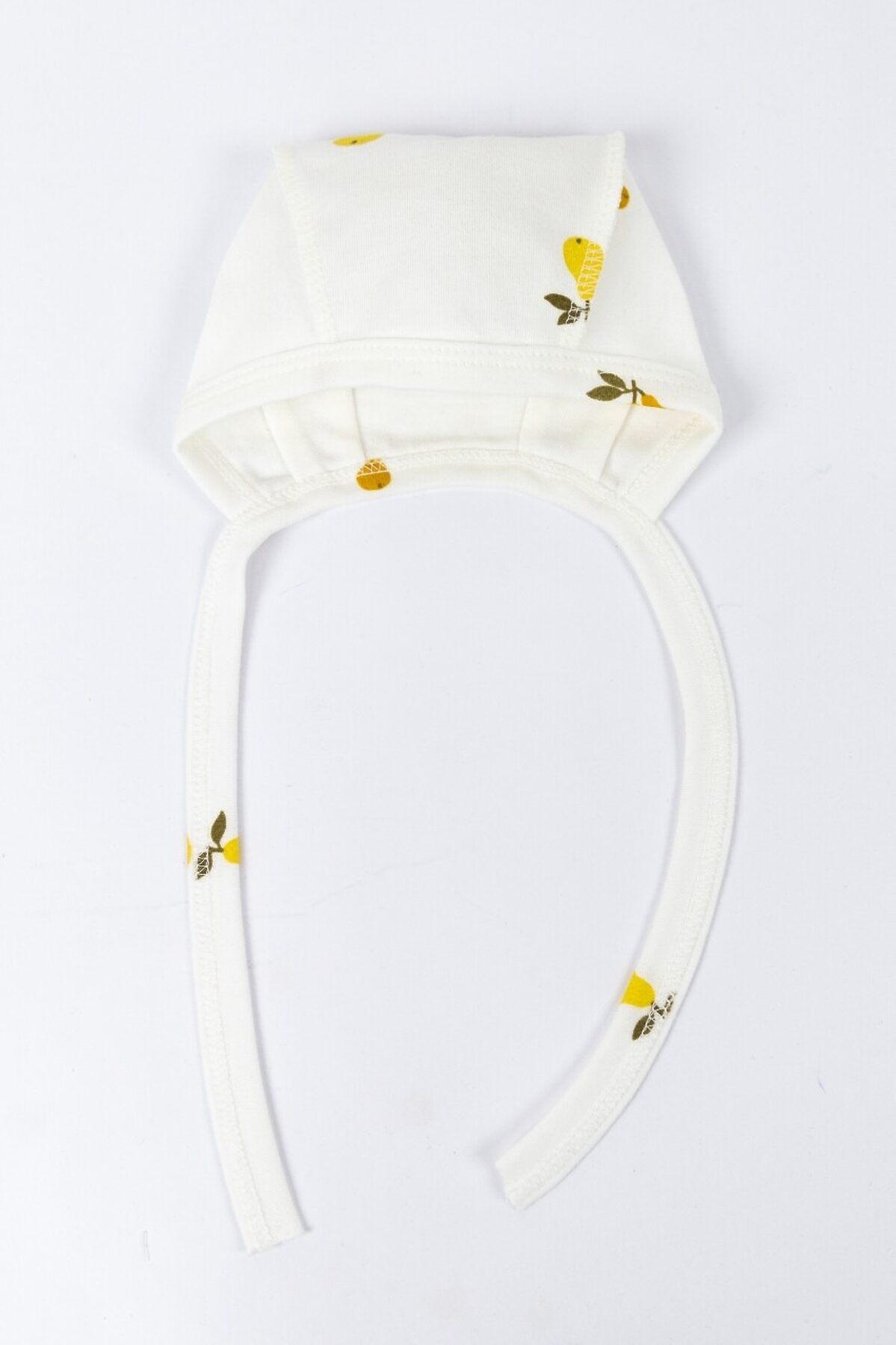 Чепчик из набивного интерлока (100% хлопок), выполнен швами наружу.