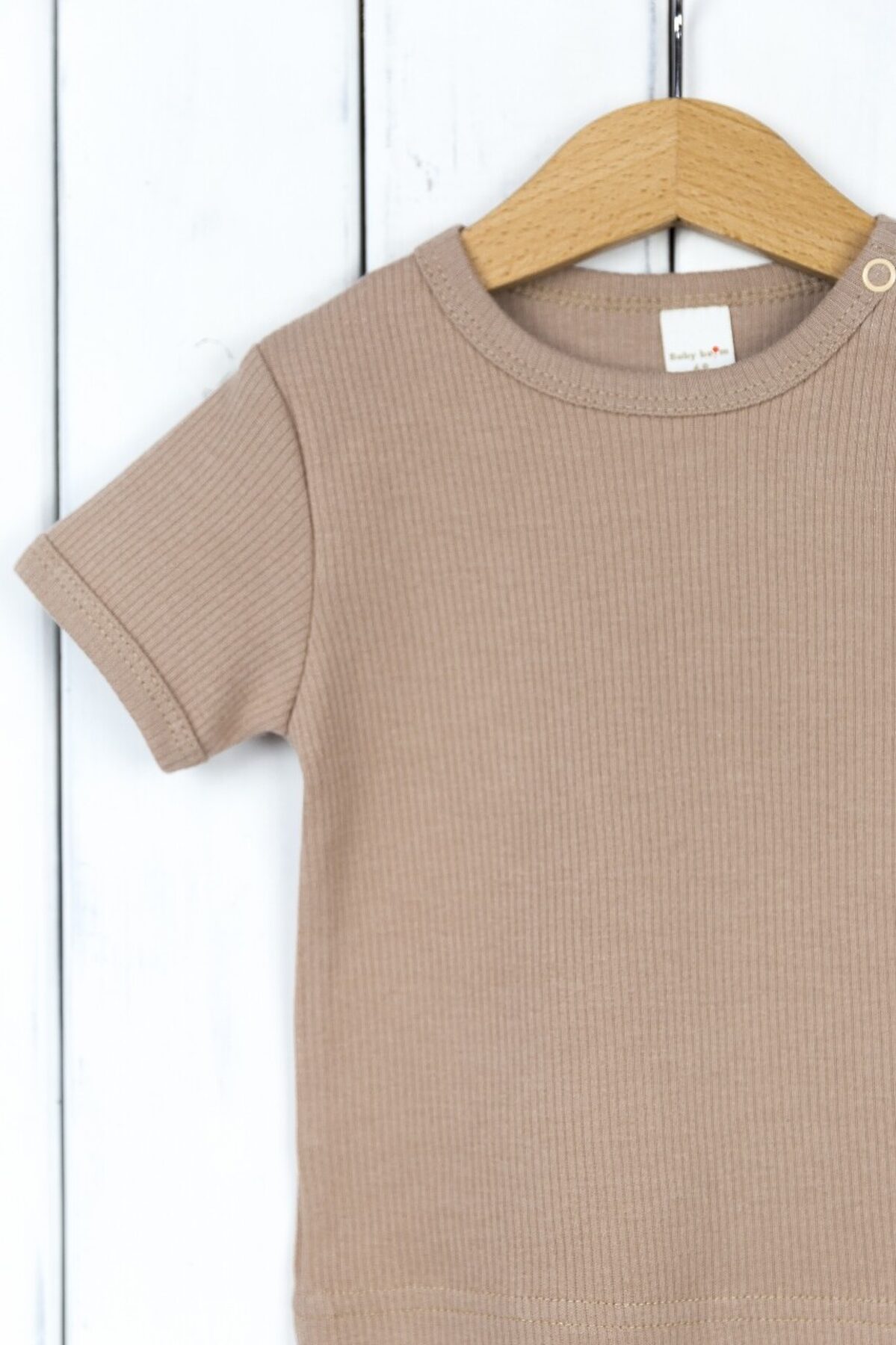 Футболка из фактурного интерлока (100% хлопок) с застежкой на кнопках по плечу.
