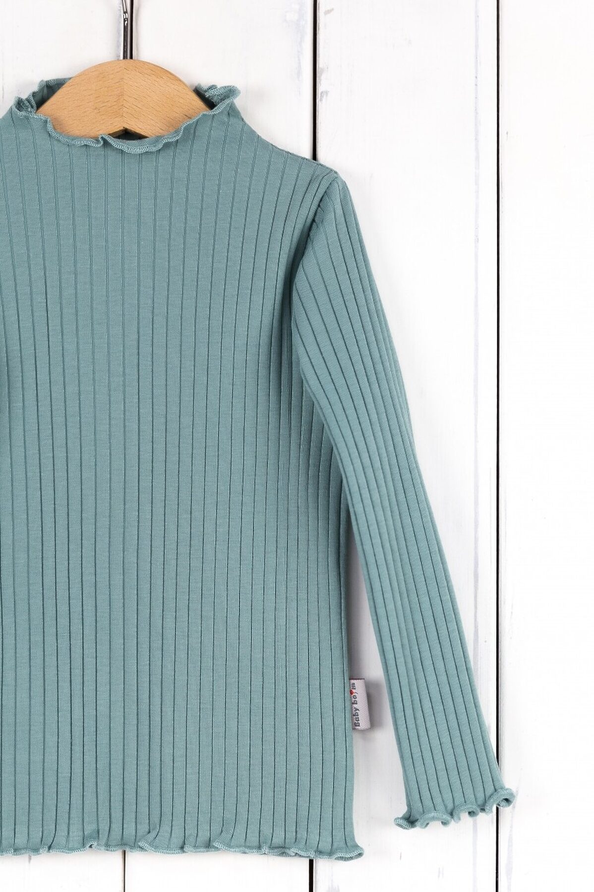 Лонгслив для девочки, выполнен из эластичного кашкорсе (95% хлопок, 5% эластан).