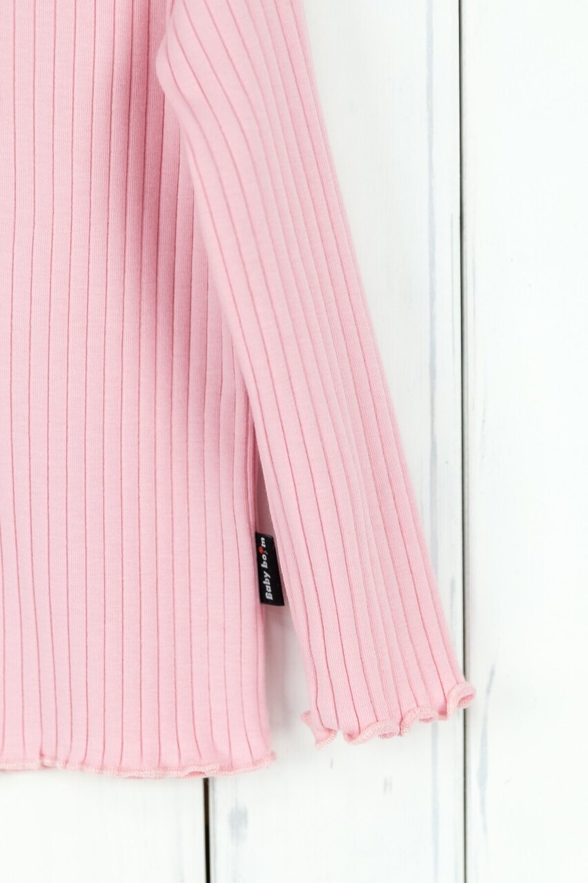 Лонгслив для девочки, выполнен из эластичного кашкорсе (95% хлопок, 5% эластан).