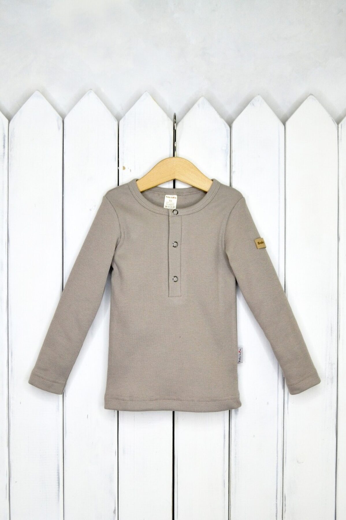 Лонгслив в европейском стиле из эластичного кашкорсе с начесом, 95% хлопок, 5% эластан. Застежка-поло по переду.