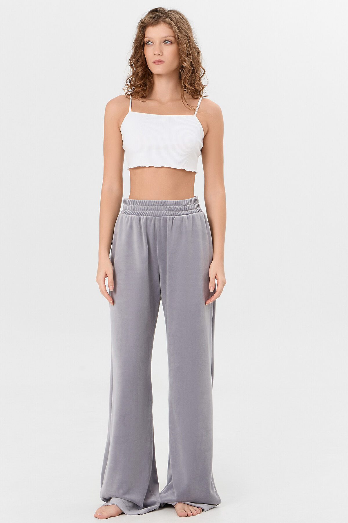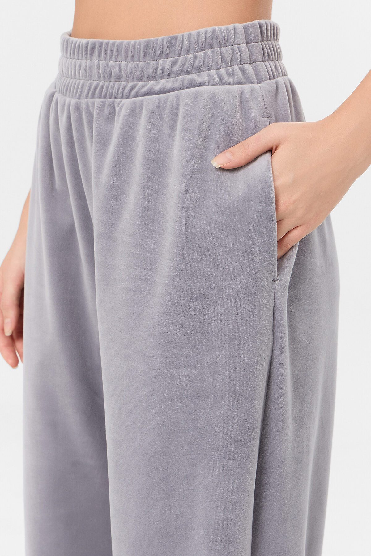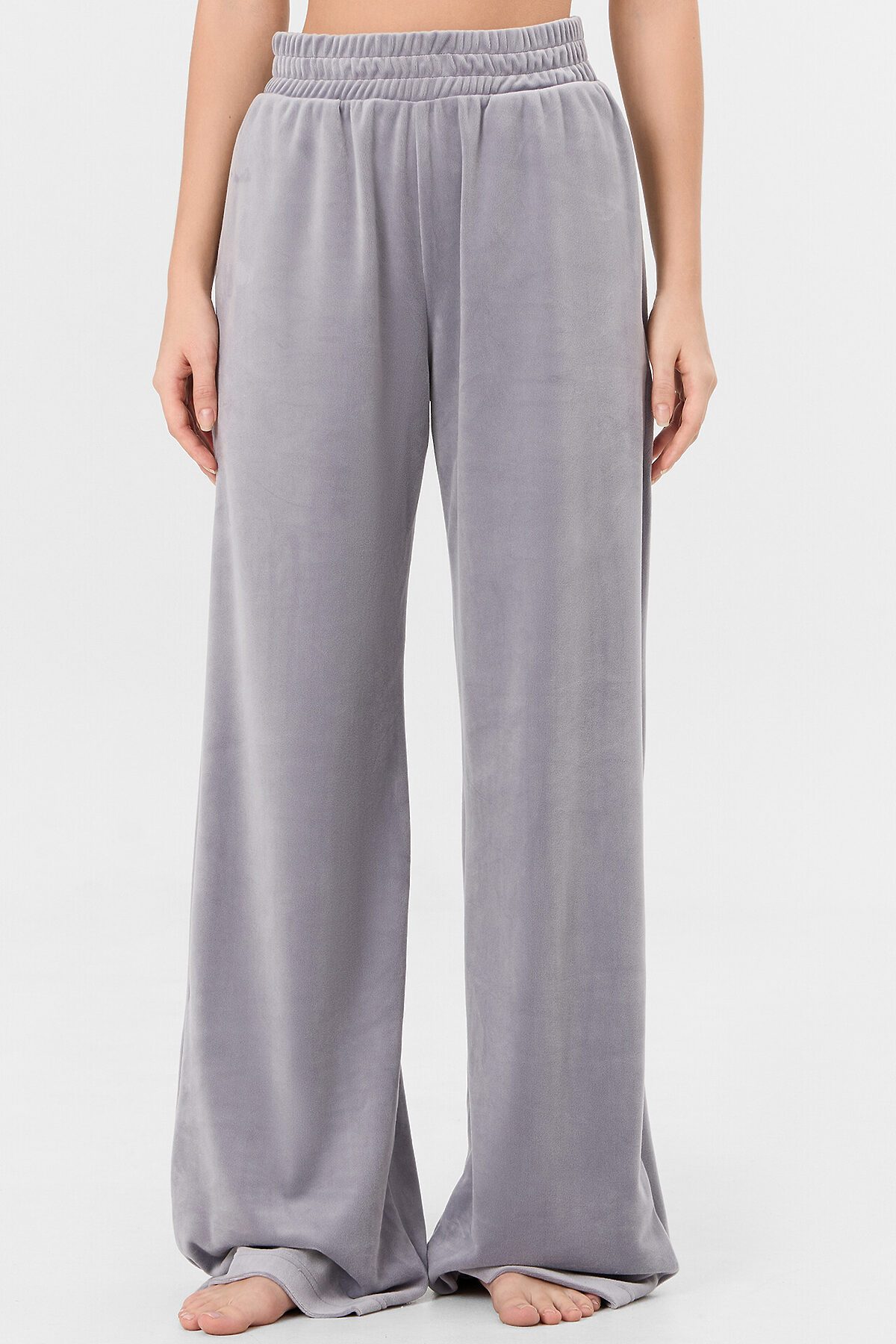 Серые велюровые брюки станут любимым предметом для комфортного отдыха дома в прохладное время года. Модель свободного кроя с высокой посадкой на талии создает элегантный силуэт и обеспечивает комфорт в течение всего дня.
