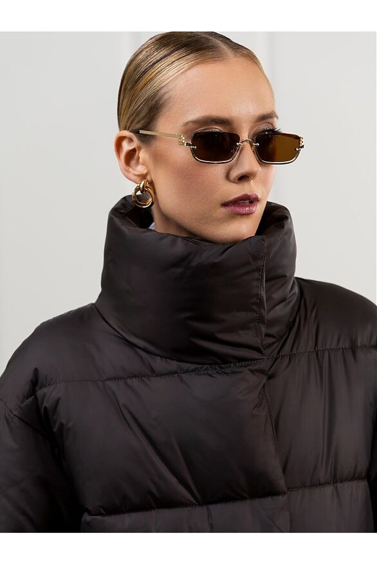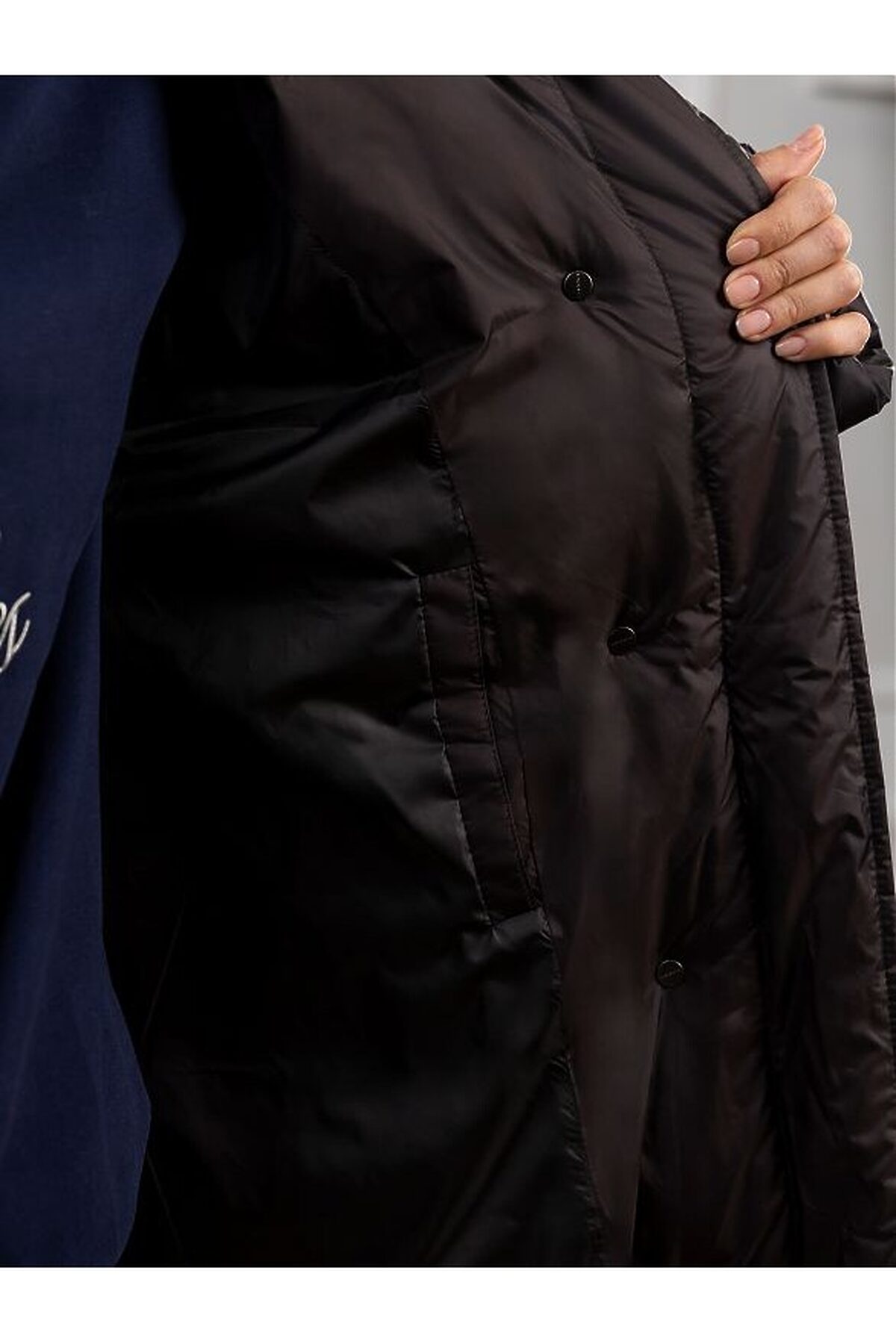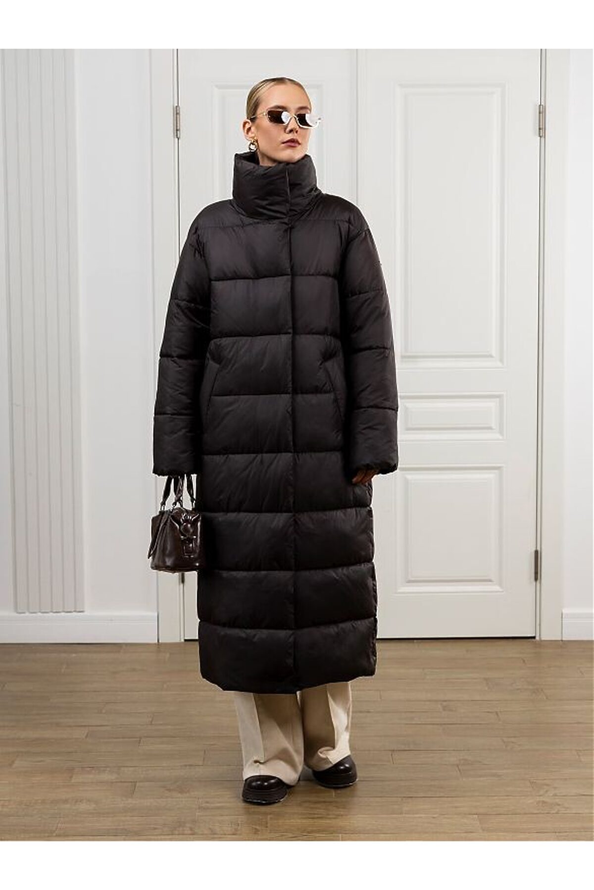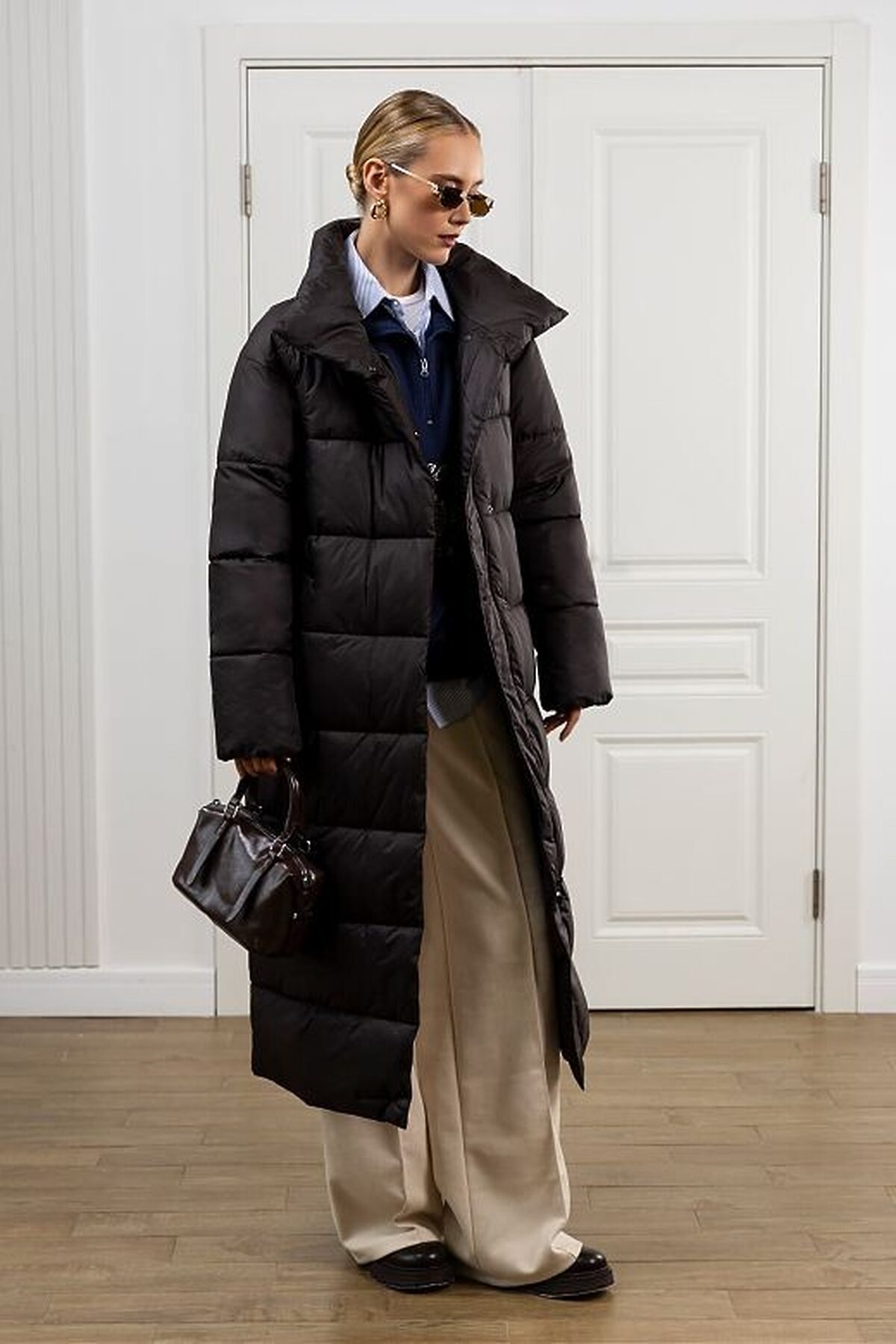 Пуховик прямого силуэта на молнии и потайных кнопках. Рукав со спущенным плечом. По низу рукава идет внутренняя ветрозащитная утяжка на резинке. Горловина изделия оформлена воротником стойкой на магнитных кнопках. В изделии два функциональных удобных кармана оформленные листочками на магнитах. Ткань - плащевая с водоотталкивающей пропиткой. Утепление: Био-пух 250 гр. Рекомендуемый температурный режим (от -5°C до -20°C). Длина изделия -120 см. Длина рукава - 64 см.