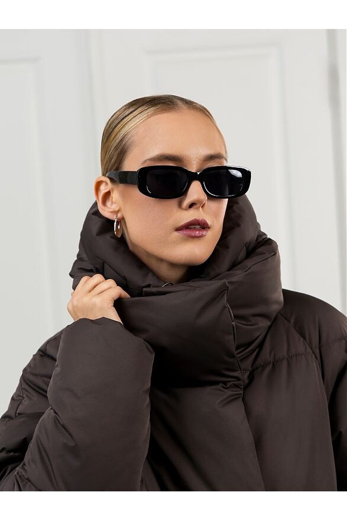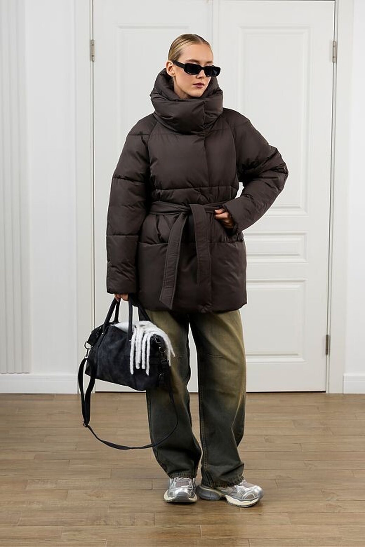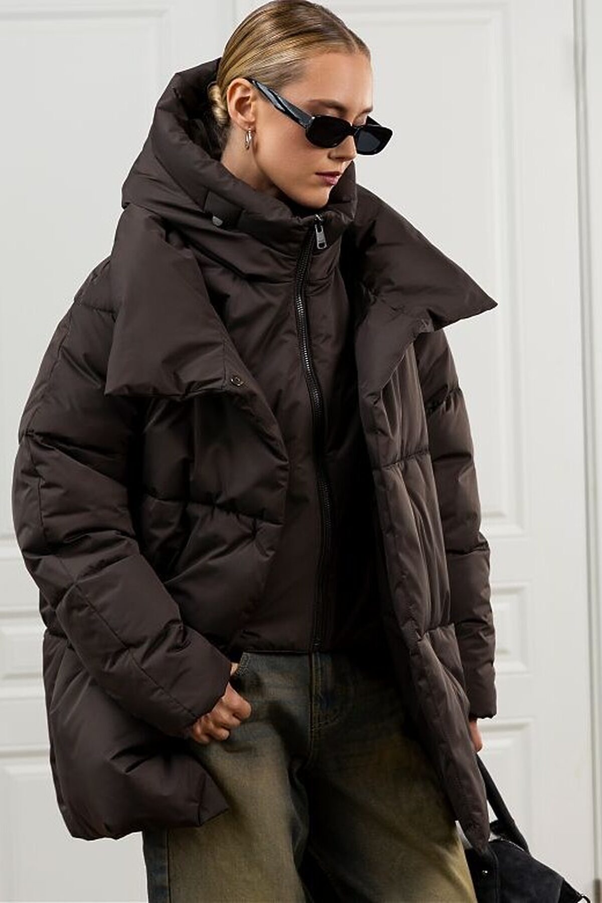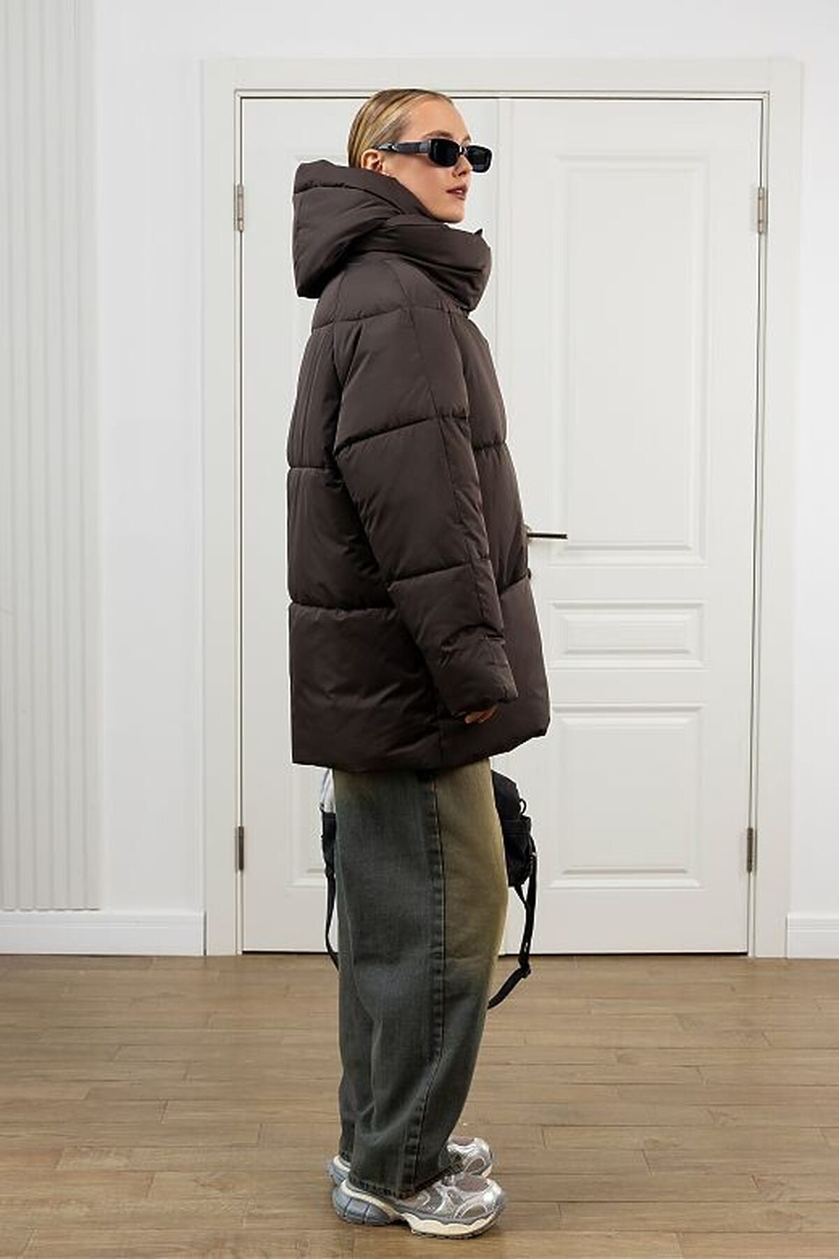 Пуховик Oversize со съемной манишкой на кнопках. Капюшон на утяжке , изделие средней длины с увеличенной стойкой.