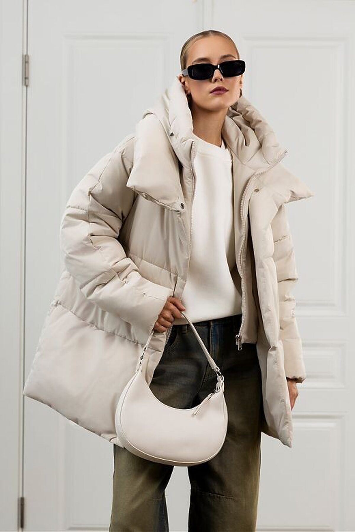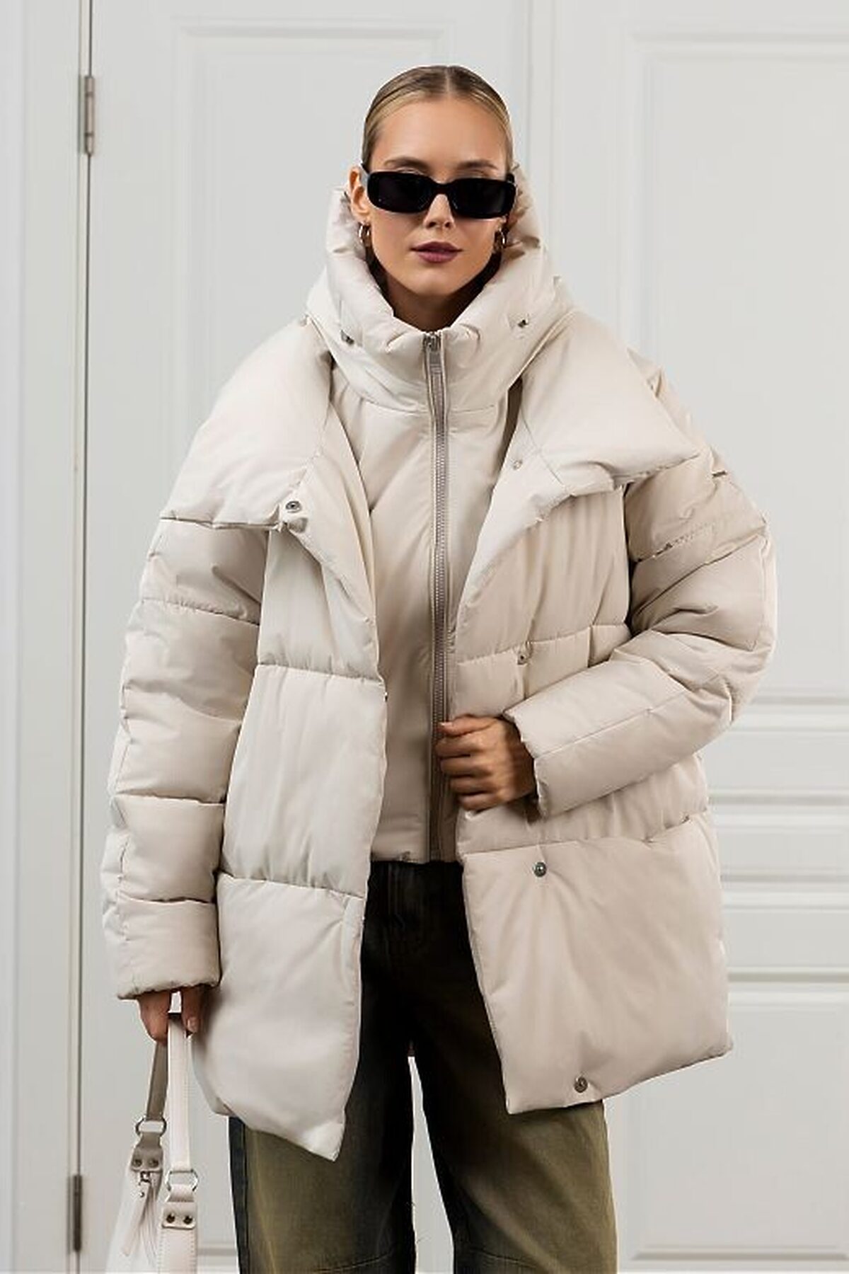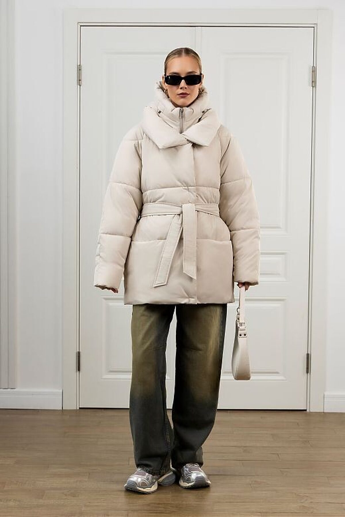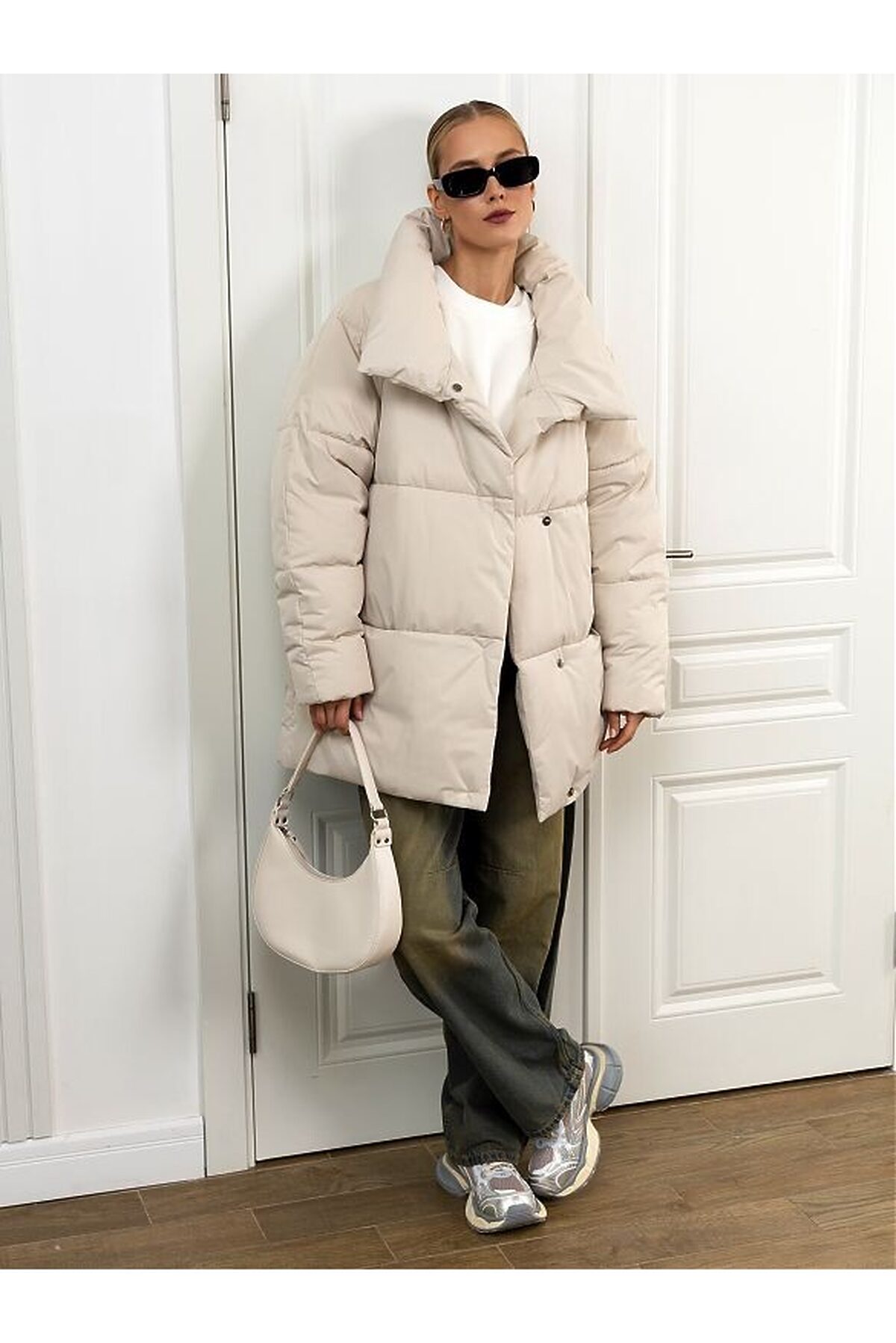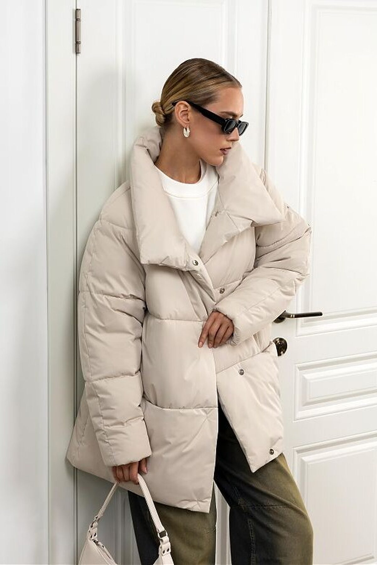 Пуховик Oversize со съемной манишкой на кнопках. Капюшон на утяжке , изделие средней длины с увеличенной стойкой.