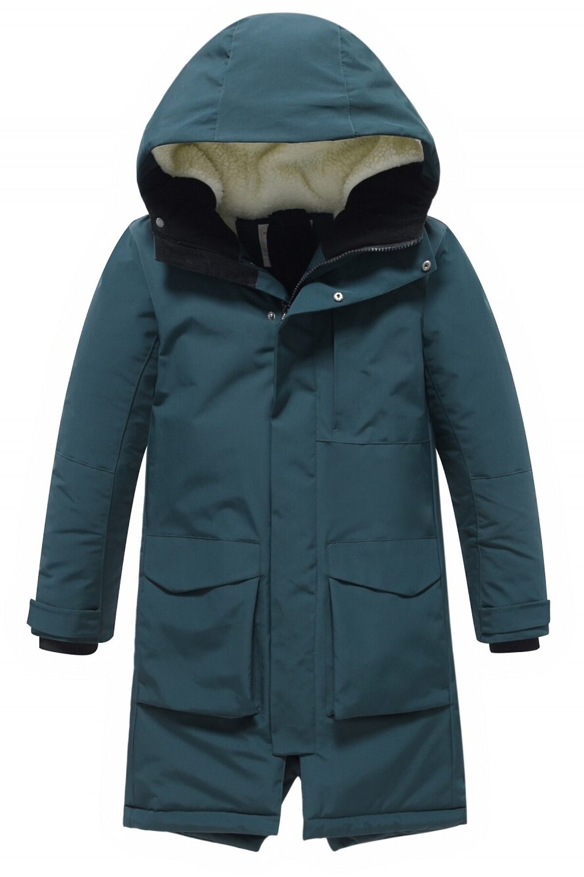 Зимняя парка для мальчика-подростка разработана с учётом всех требований к тёплой и практичной верхней одежде для холодного времени года. Свободный крой до колена обеспечивает удобство и свободу движений, модель одинаково комфортна как для школы, так и для повседневных прогулок. Верх выполнен из плотной износостойкой ткани с водоотталкивающими свойствами, а проклеенные швы надёжно защищают от ветра и влаги, сохраняя тепло внутри. Современный утеплитель тинсулейт с плотностью 280 г/м² поддерживает комфортный температурный режим и позволяет носить парку в диапазоне от +5 до –25 градусов. Внутренняя подкладка из овчины, полиэстера и флиса делает модель особенно уютной и приятной к телу. Капюшон несъёмный, он плотно прилегает и надёжно защищает голову в непогоду. Стояче-отложной воротник прикрывает шею и обеспечивает дополнительную защиту от ветра. На рукавах и капюшоне предусмотрены регулируемые фиксаторы, которые позволяют удерживать тепло и подстраивать посадку под ребёнка. Манжеты из трикотажа не пропускают холодный воздух, сохраняя руки в тепле. Двойная молния с клапаном на кнопках надёжно закрывает парку и предотвращает продувание. Практичные прорезные и накладные карманы позволяют удобно хранить необходимые вещи и согревать руки. Внутренние карманы делают модель ещё более функциональной. Светоотражающие детали и логотип со светоэффектом повышают заметность ребёнка в тёмное время суток. Эта парка представлена в стильных универсальных цветах — коричневом, тёмно-зелёном, чёрном и бежевом. Модель станет отличным выбором для родителей, которые ищут тёплую, удобную и долговечную зимнюю парку для мальчика-подростка, где сочетаются практичность, современный дизайн и комфорт.