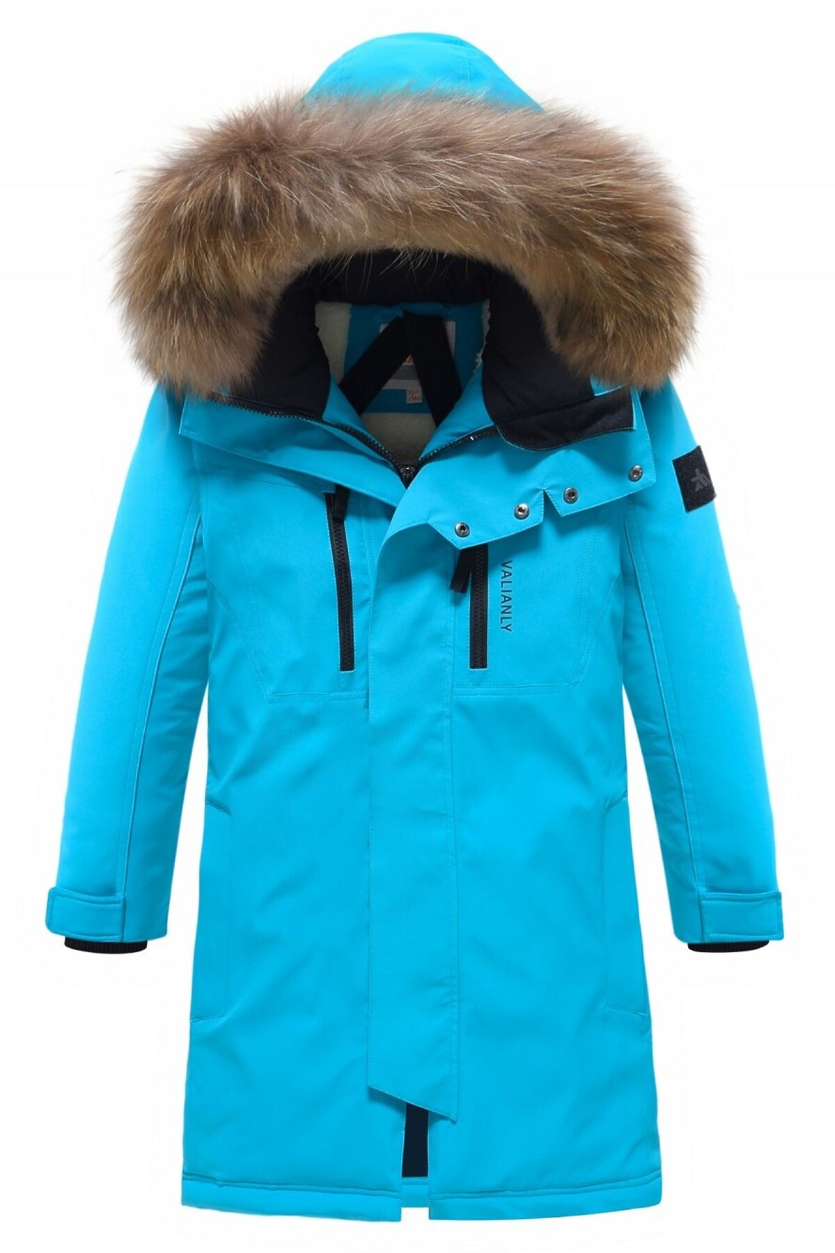 Зимняя парка для мальчика-подростка с натуральным мехом енота создана для надёжной защиты в холодное время года. Плотная износостойкая ткань с водоотталкивающими свойствами и проклеенные швы защищают от ветра и влаги, сохраняя тепло даже в условиях мокрого снега и сильного ветра. Утеплитель тинсулейт с плотностью 285 г/м² поддерживает комфортную температуру внутри и не утяжеляет модель, что позволяет носить парку каждый день в диапазоне от +5 до –25 градусов. Внутренняя подкладка из овчины, полиэстера и флиса делает модель особенно уютной и приятной к телу. Капюшон несъёмный, он плотно прилегает к голове и дополнительно защищает от непогоды. Опушка из натурального меха енота на молнии при желании легко снимается. Стояче-отложной воротник надёжно закрывает шею и обеспечивает защиту даже без шарфа. Регулируемые фиксаторы на рукавах и капюшоне позволяют настроить посадку и удерживать тепло, а мягкие трикотажные манжеты не пропускают холодный воздух. Двойная молния с клапаном на кнопках надёжно блокирует продувание. Вместительные внешние карманы с начёсом на молнии и магнитах подходят для хранения вещей и согревания рук, внутренние карманы делают парку ещё более практичной. Светоотражающие детали и логотип со светоэффектом повышают безопасность ребёнка в тёмное время суток. Парка выполнена в универсальных цветах — синем, голубом и чёрном — и подойдёт как для школы, так и для повседневных прогулок. Эта модель станет идеальным выбором для родителей, которые ищут тёплую, функциональную и долговечную зимнюю парку для мальчика-подростка, сочетающую практичность, современный дизайн и статусный акцент натурального меха енота.